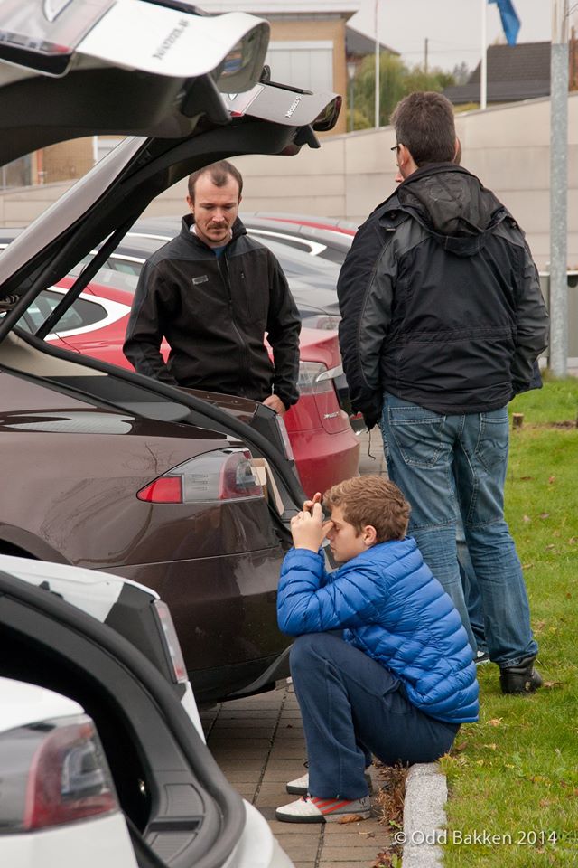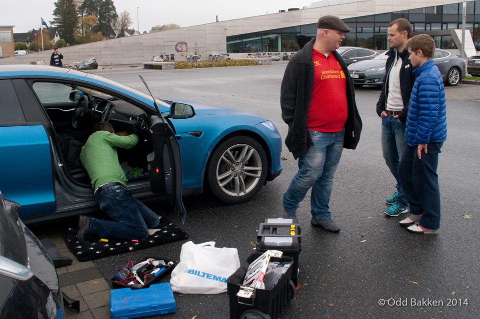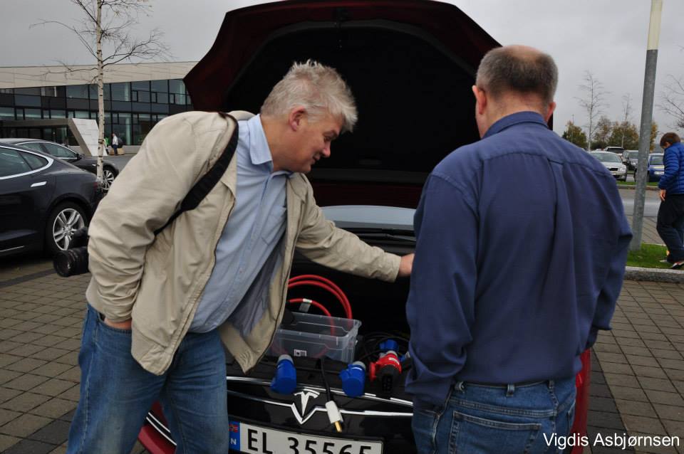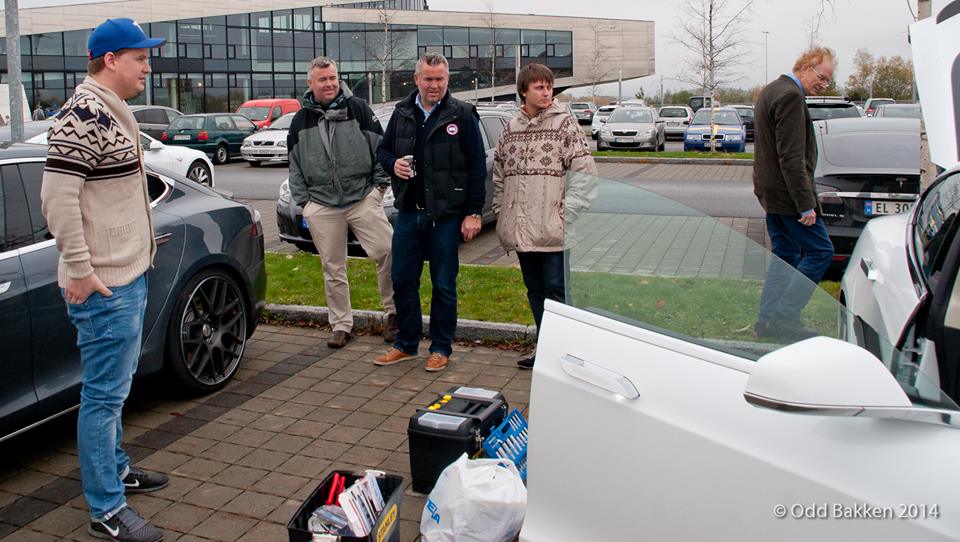 John monterte flere dashboard kamera, Hans Christian lys til bagasjerom, noen var inne på Inspiria, og ellers ble det mye Teslaprat.