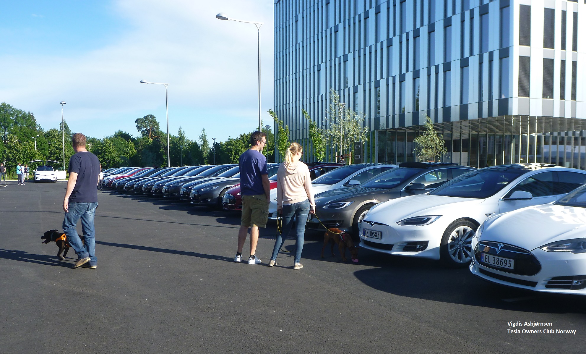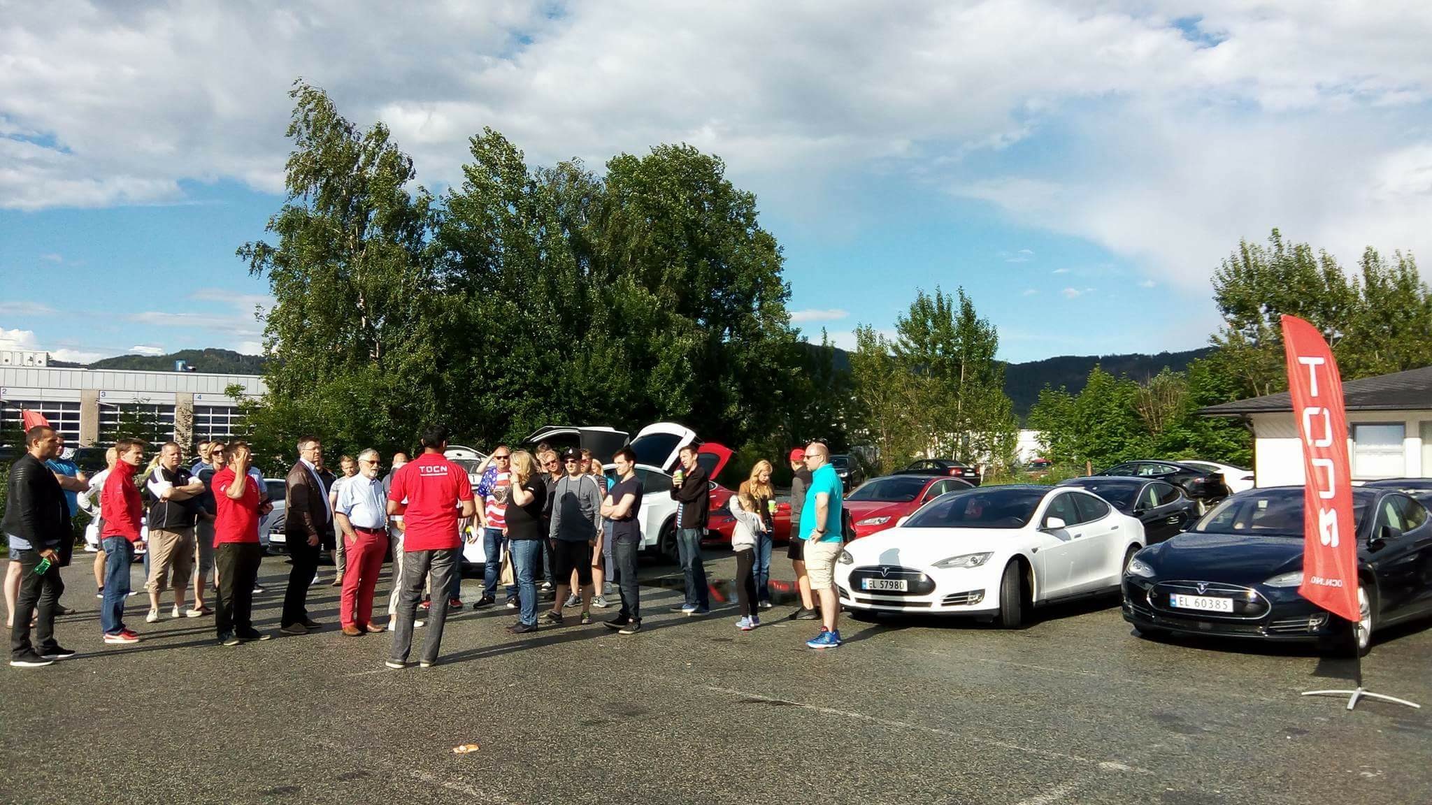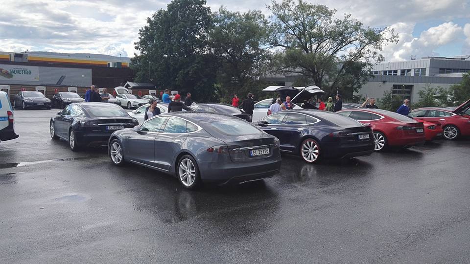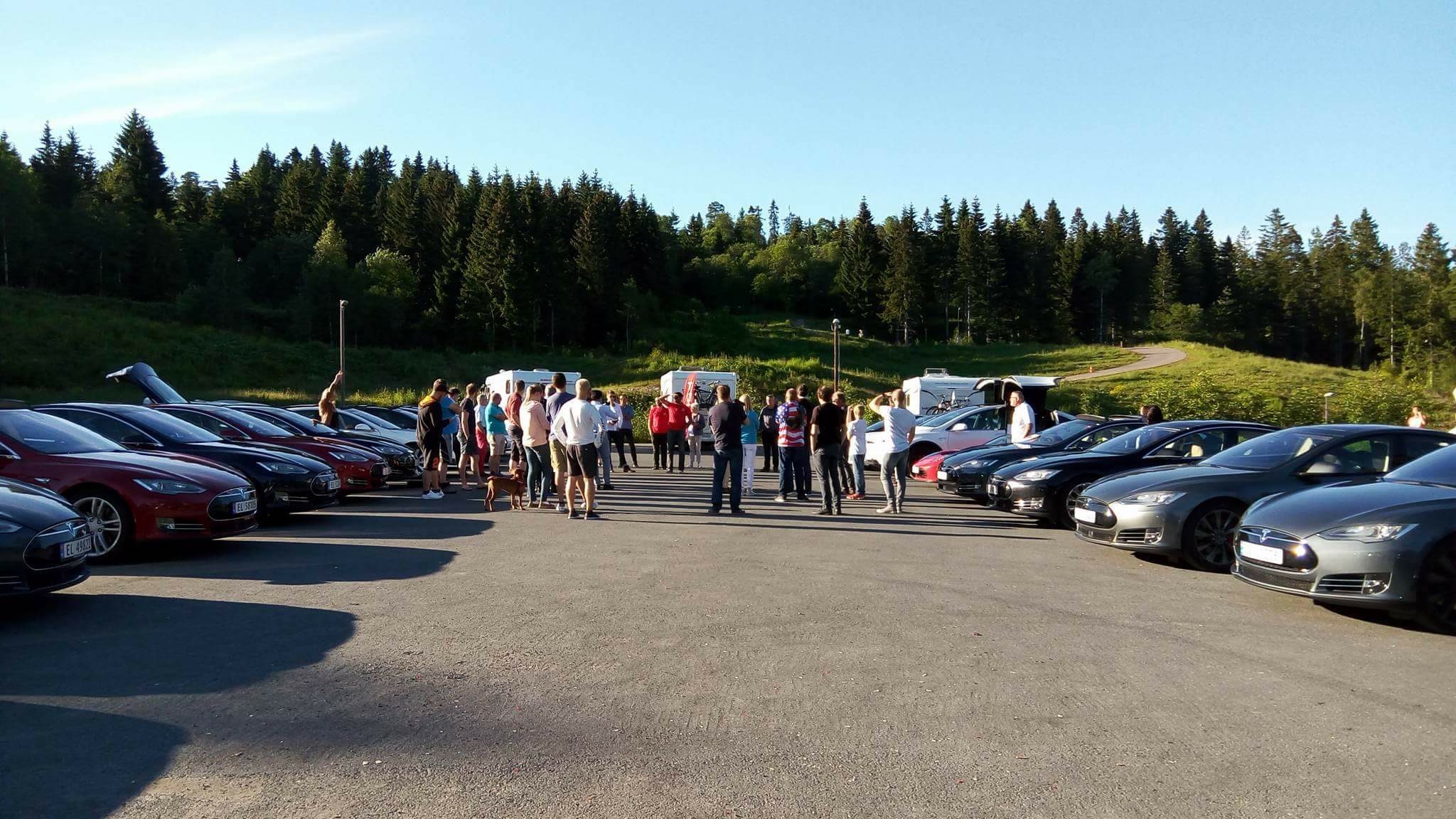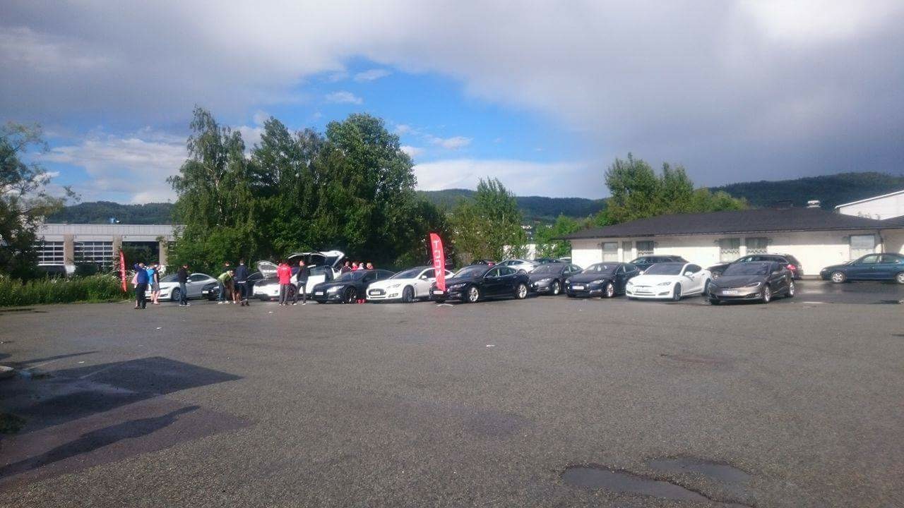 En Tesla på veien vekker kanskje ikke så mye oppsikt på Østlandet lenger, men 25 som skulle samme vei og holdt følge med hverandre gjorde!