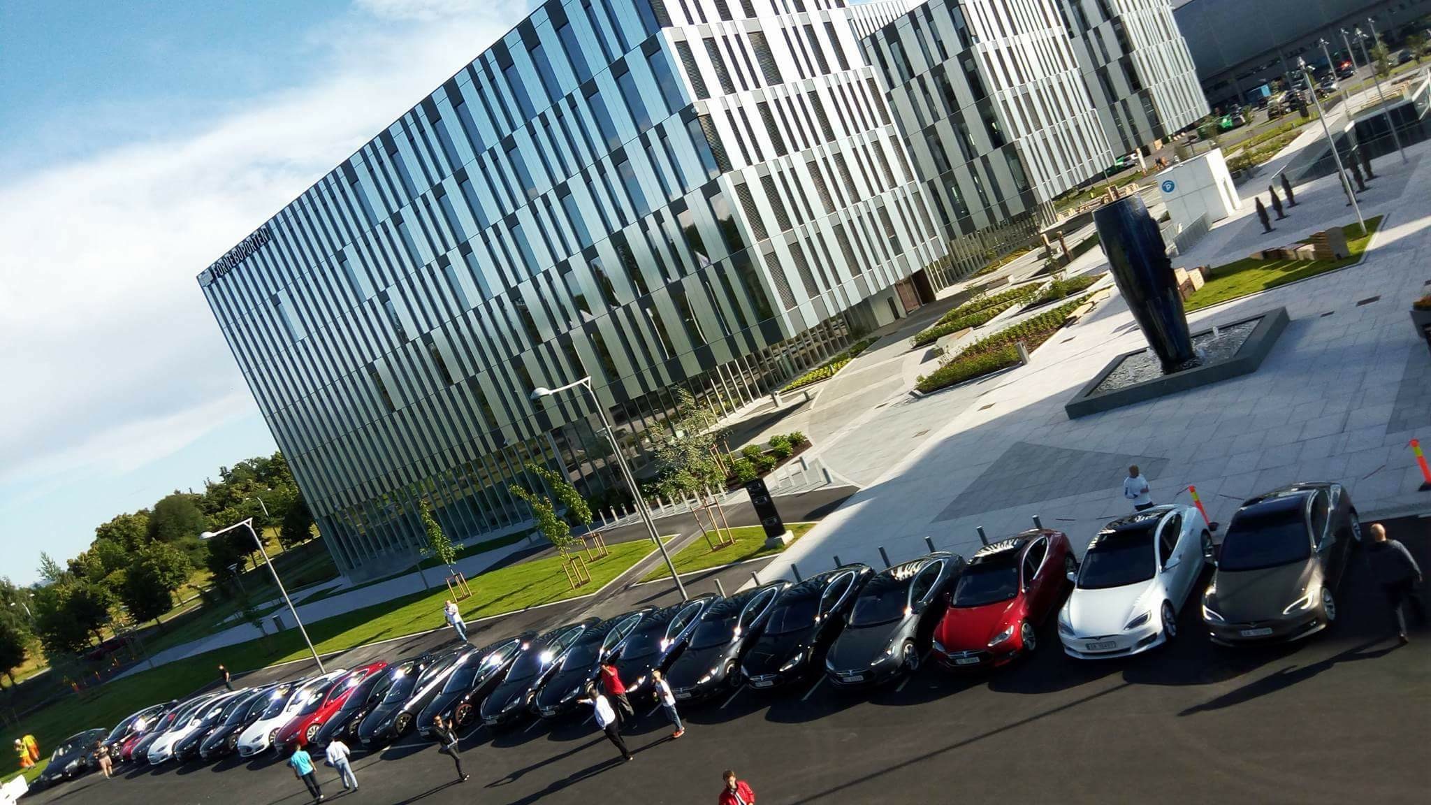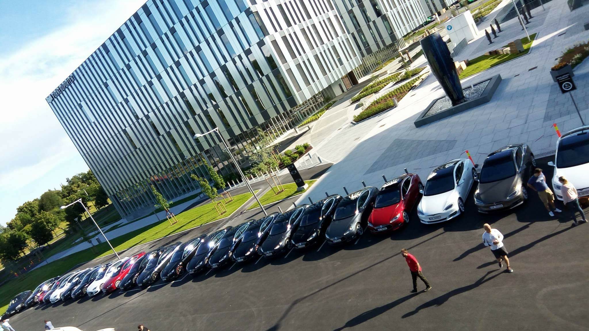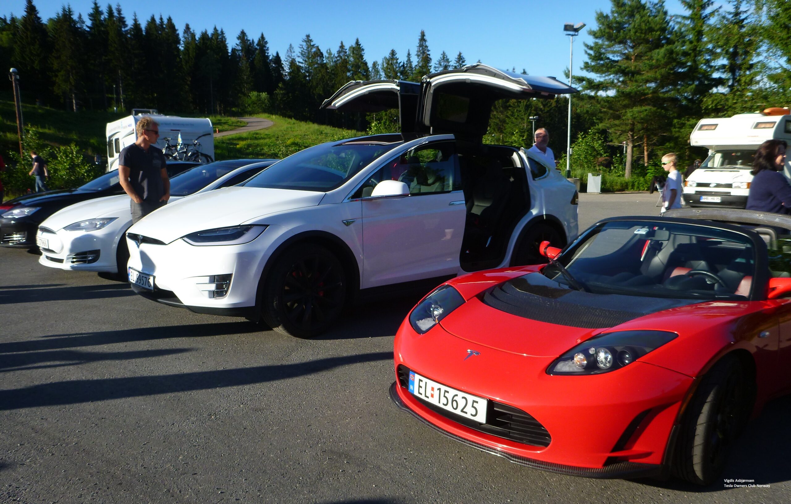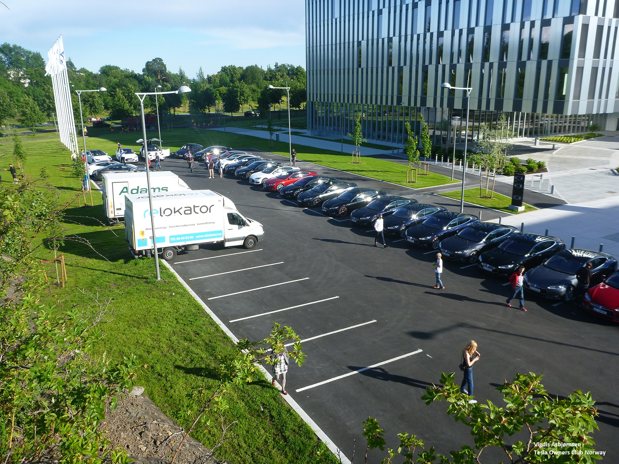 En Tesla på veien vekker kanskje ikke så mye oppsikt på Østlandet lenger, men 25 som skulle samme vei og holdt følge med hverandre gjorde!