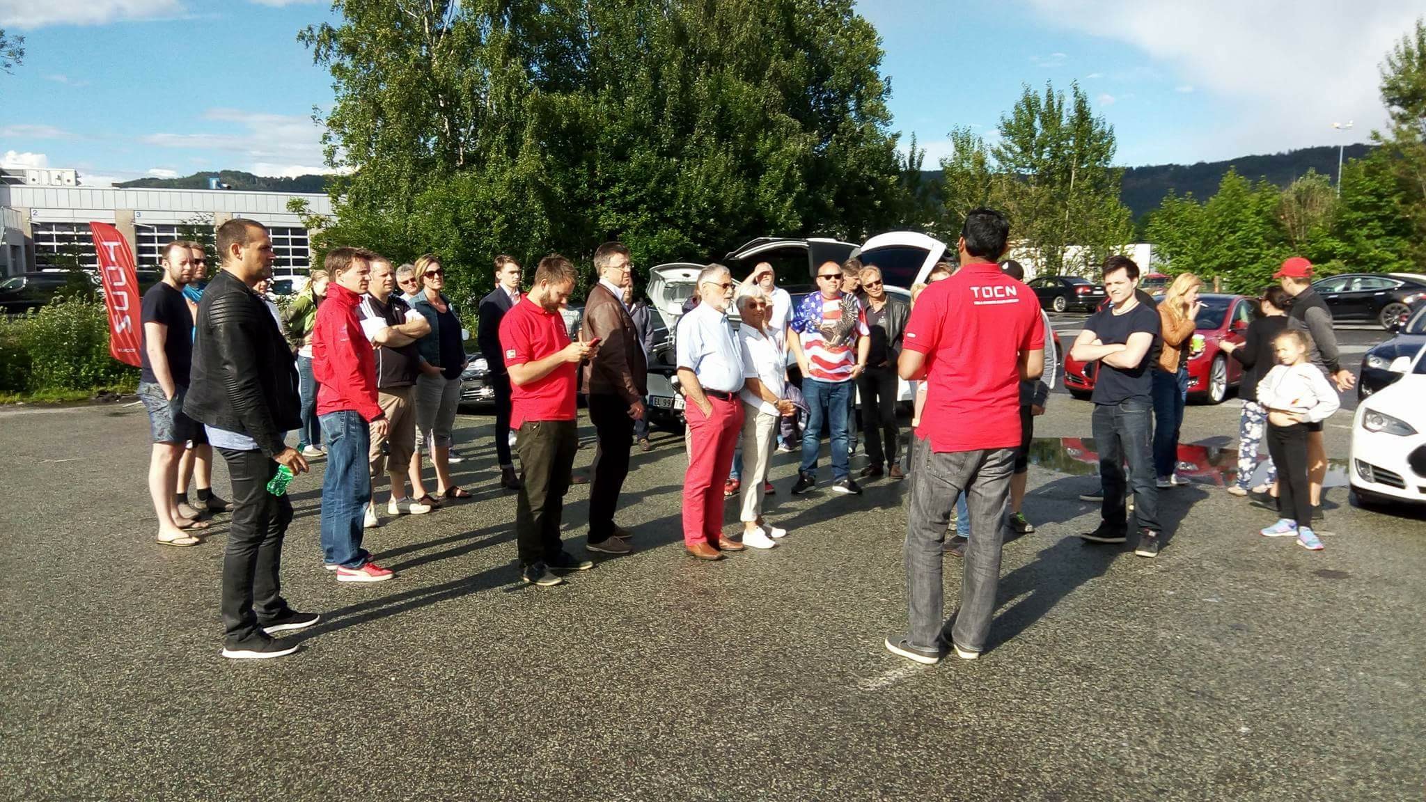 Her ble det tid til litt prøvekjøring/sitting av model-x, pizza til alle som ville ha, og en masse Teslaprat. Et par turister fra Italia fikk seg en liten luftetur i en model-s også.