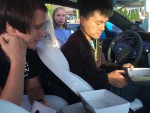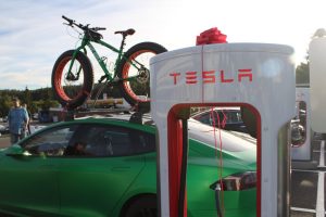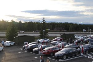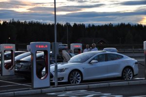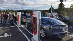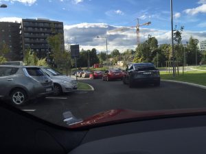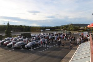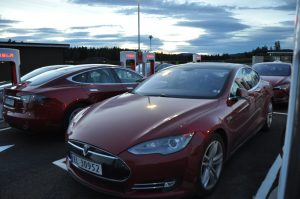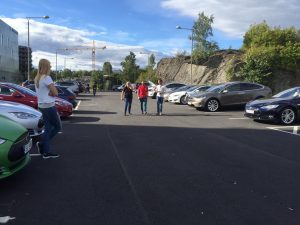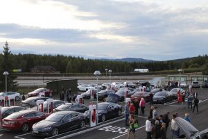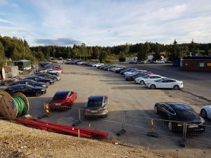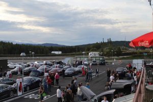 På Nebbenes ventet det en masse mennesker, noen få andre elbiler og en masse Teslaer. Utrolig moro!