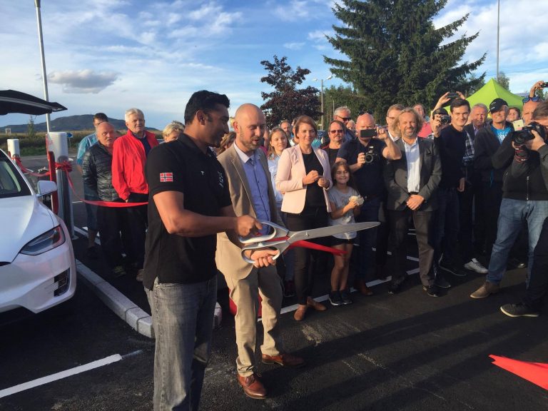 Det var et stort øyeblikk på mange måter idet snoren ble klippet. Endelig var verdens største ladested åpnet, og det av verdens største Teslaklubb!