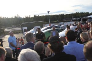 Pål Simonsen, Country manager i Tesla Motors Norge innledet det hele før han ga ordet over til Jahn Haugen Ihle i Fortum Charge and Drive. Deretter sa Elbilforeningens Christina Bu noen velvalgte ord, før ordet igjen var Pål Simonsen sitt. – Men hvem fikk klippe snoren?