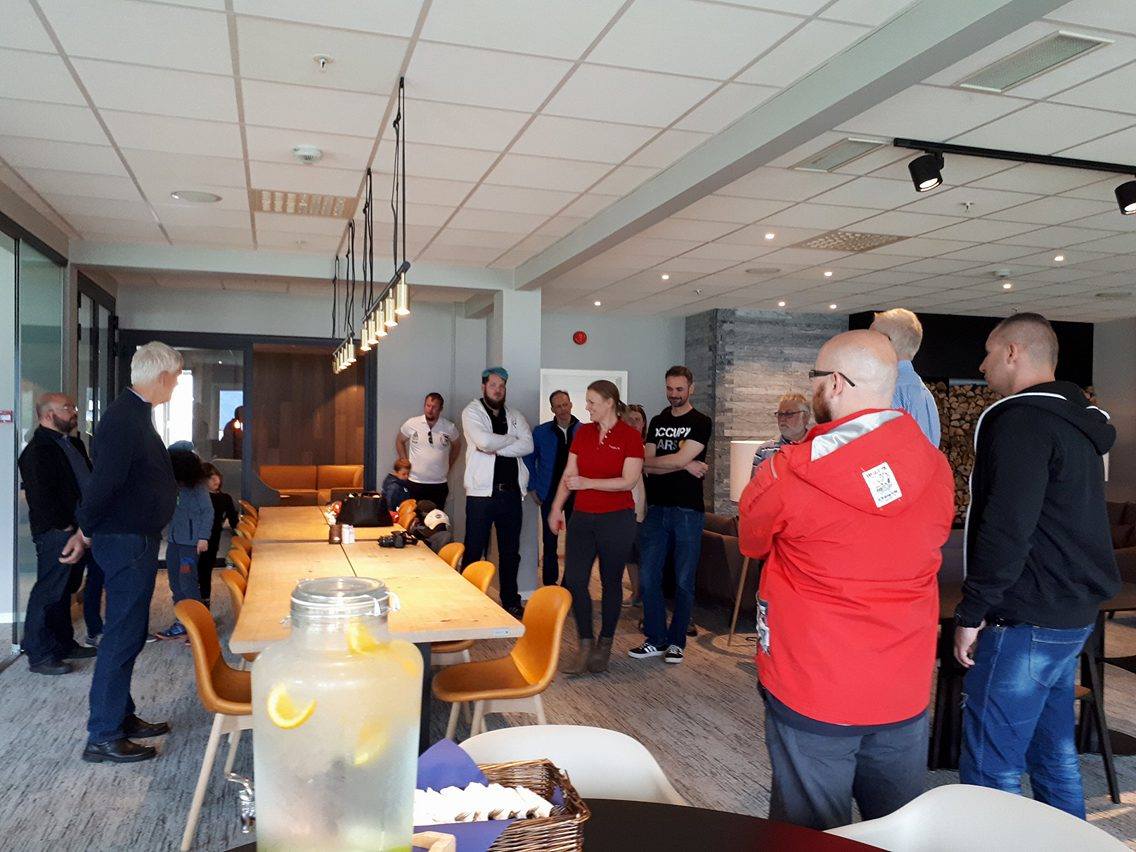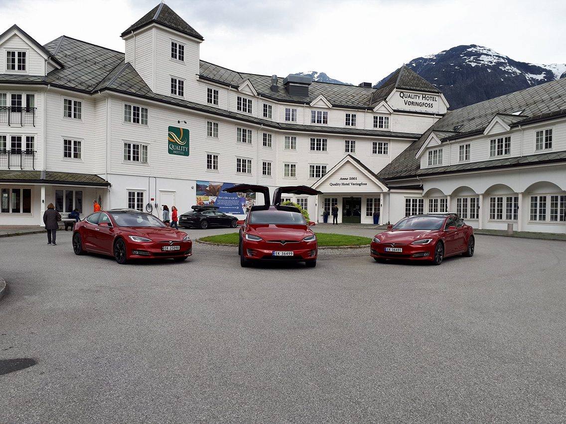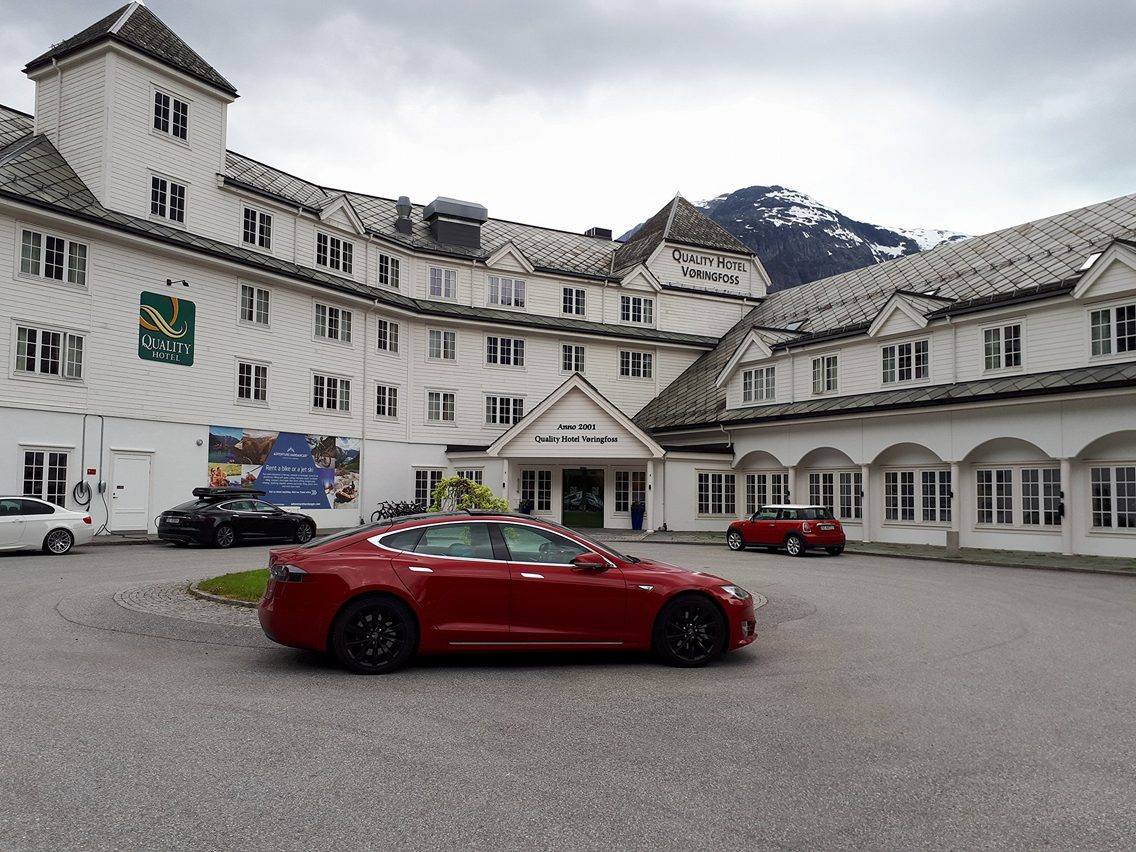 Deretter var det over til Quality Vøringsfossen Hotell hvor det var gjort klart et langbord med deilig pizza. Der ble det utdelt en bukett blomster til hotellsjefen for godt samarbeid og velvillighet med å forvalte og låne ut et TOCN CHAdeMo adapter til Teslaeiere med akutte ladebehov – før superladeren kom opp.