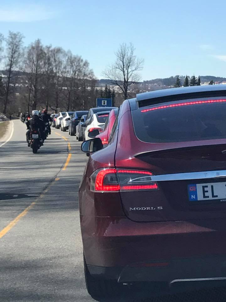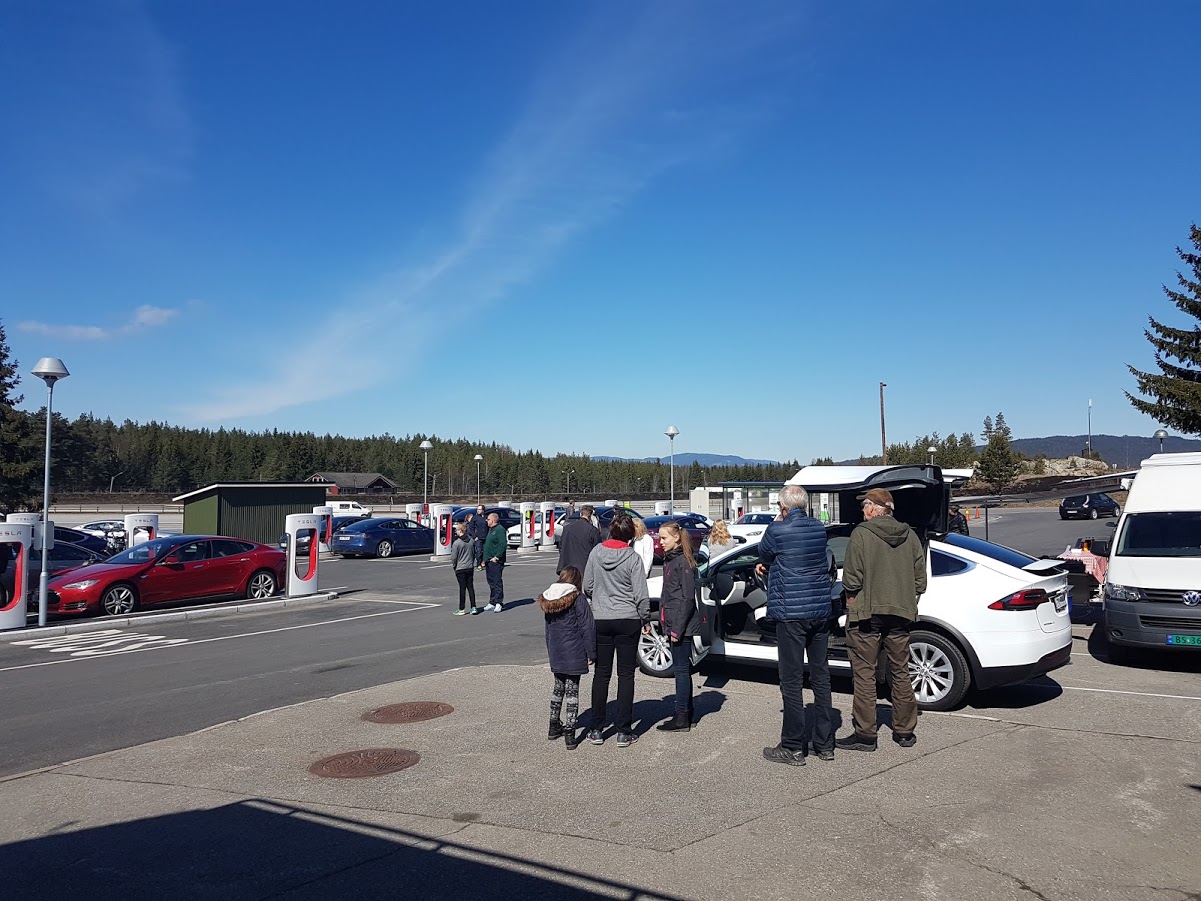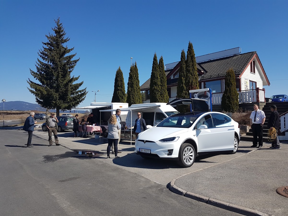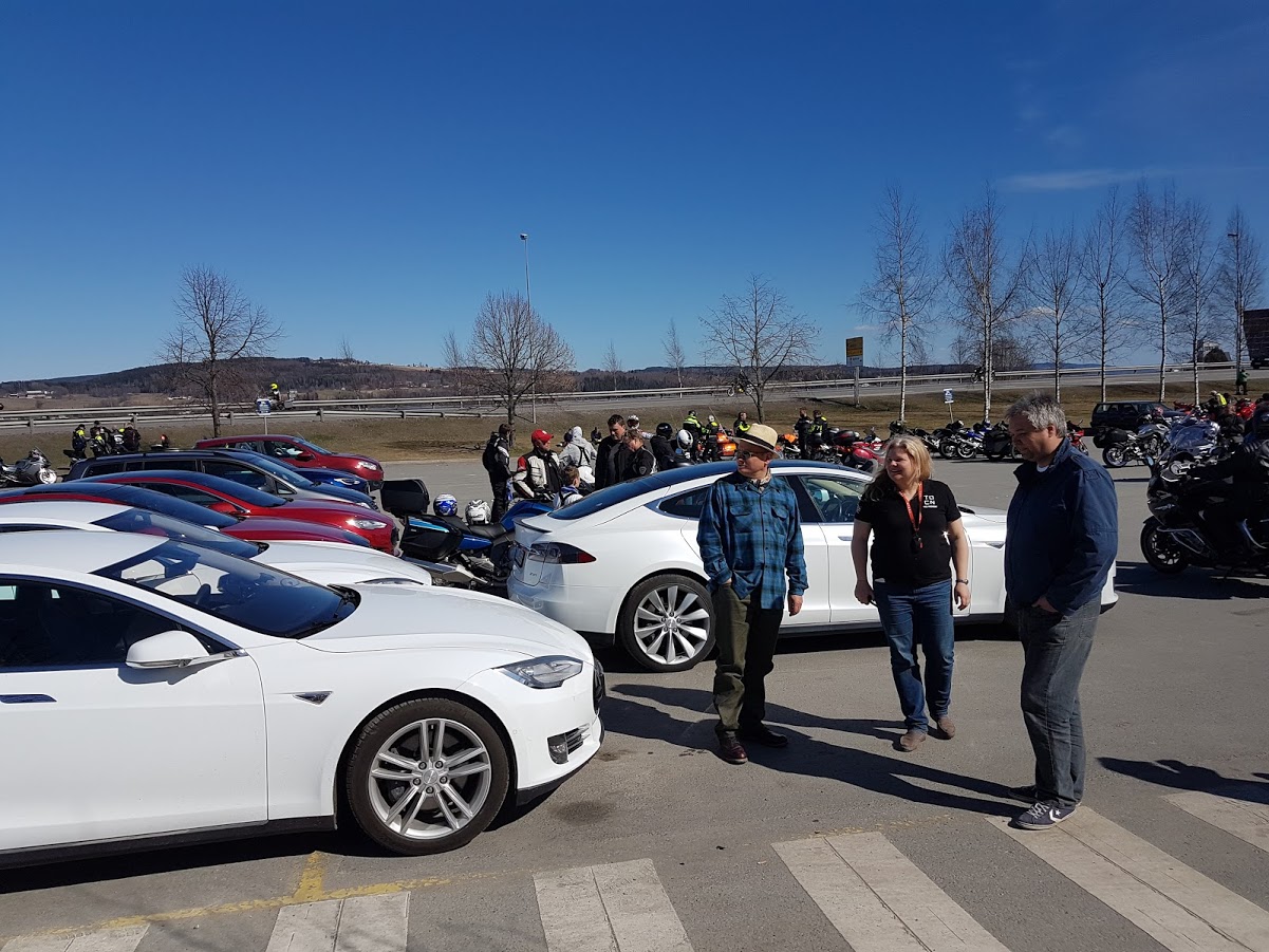 Litt moro var det underveis når vi kjørte forbi folk som var ute og gikk, de snudde seg og kikket. Vi hørte kommentarer som – de er elektriske, hør hvor stille de er.. :-)