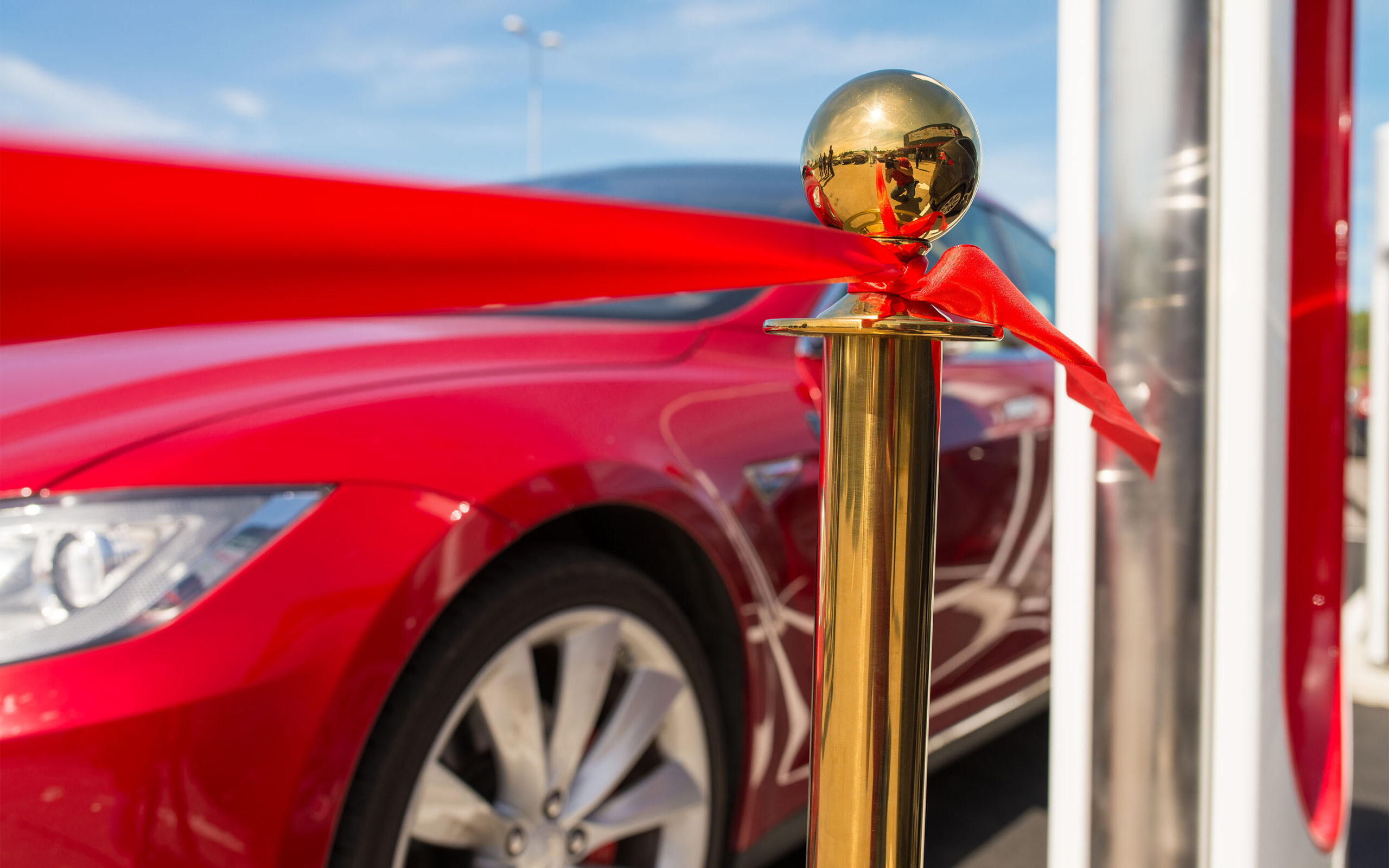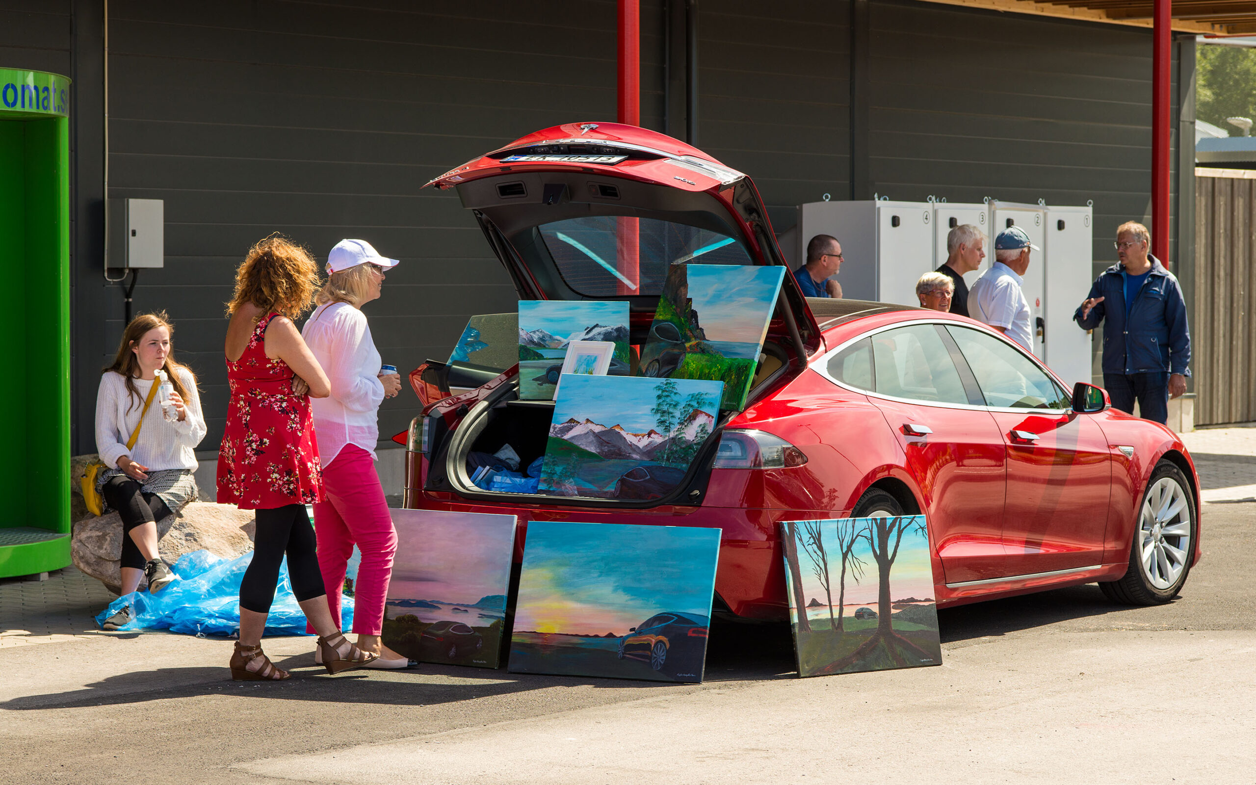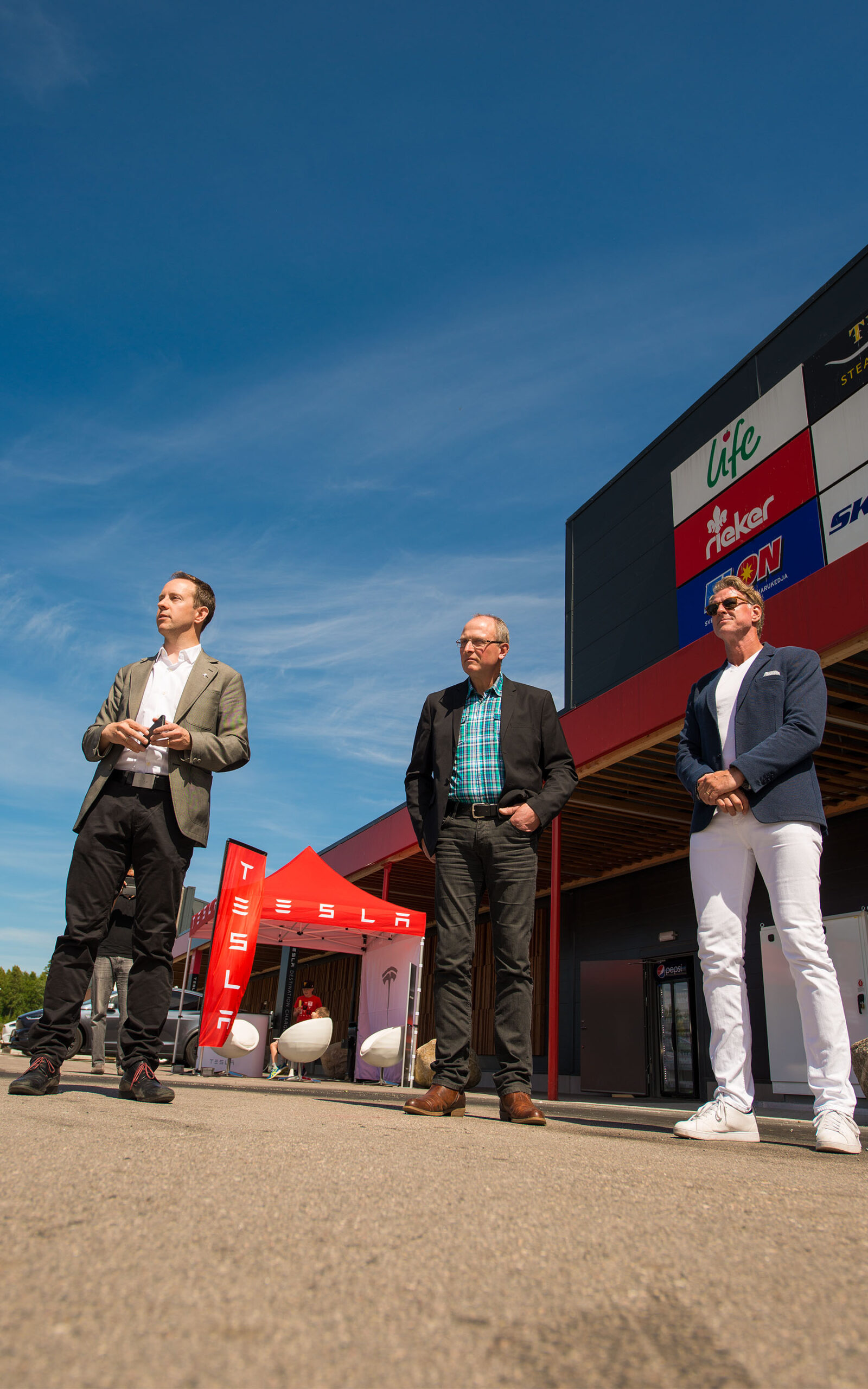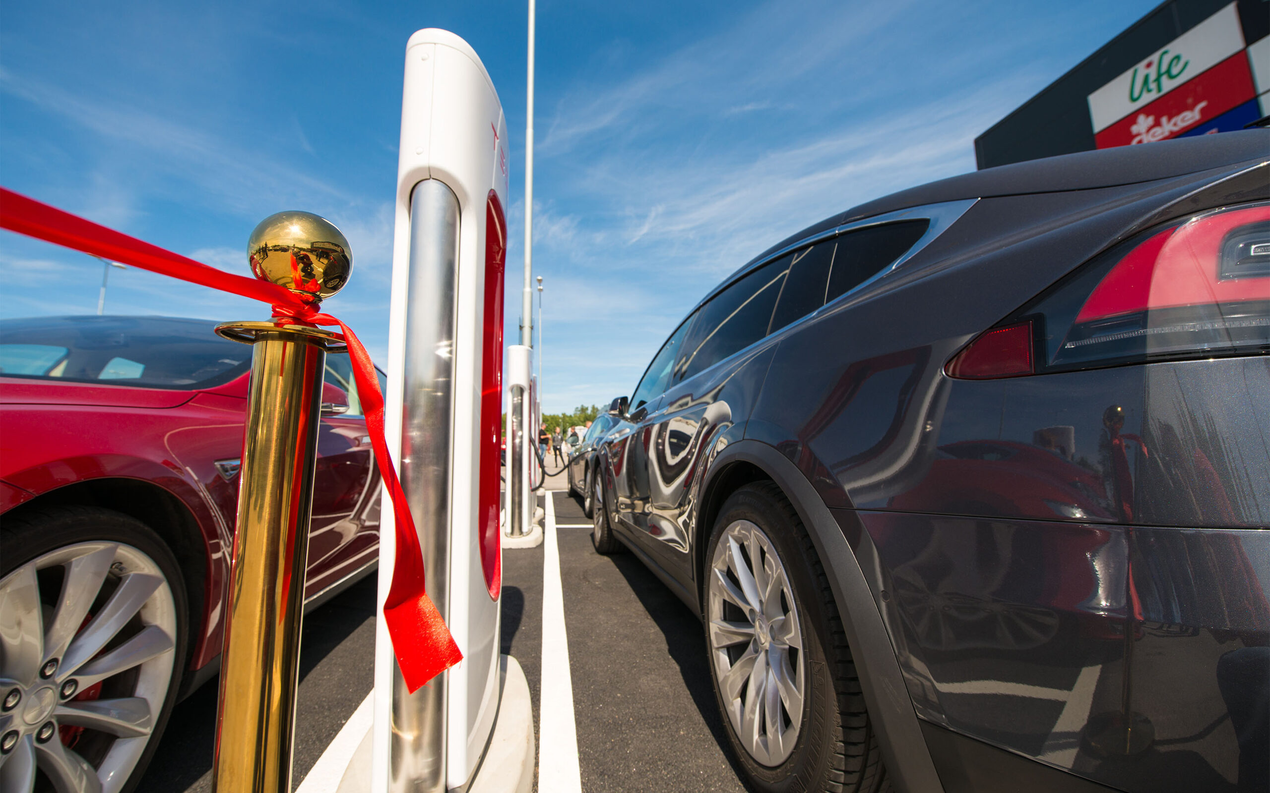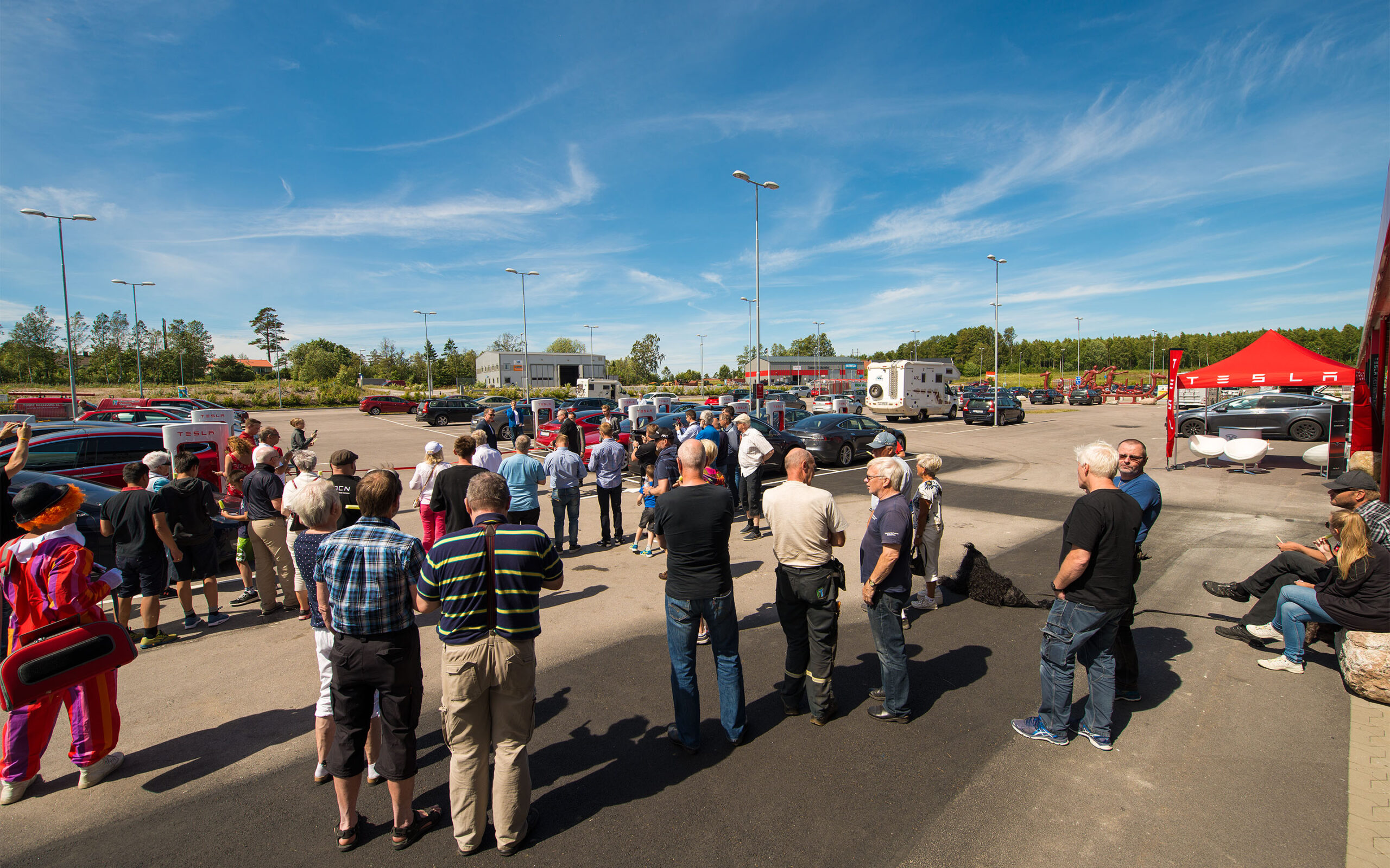 Sju teslaer suste sammen fra Norge på en solrik fredag siste dagen i juni. Sveriges aller største Supercharger skulle åpnes med høytidelighet.