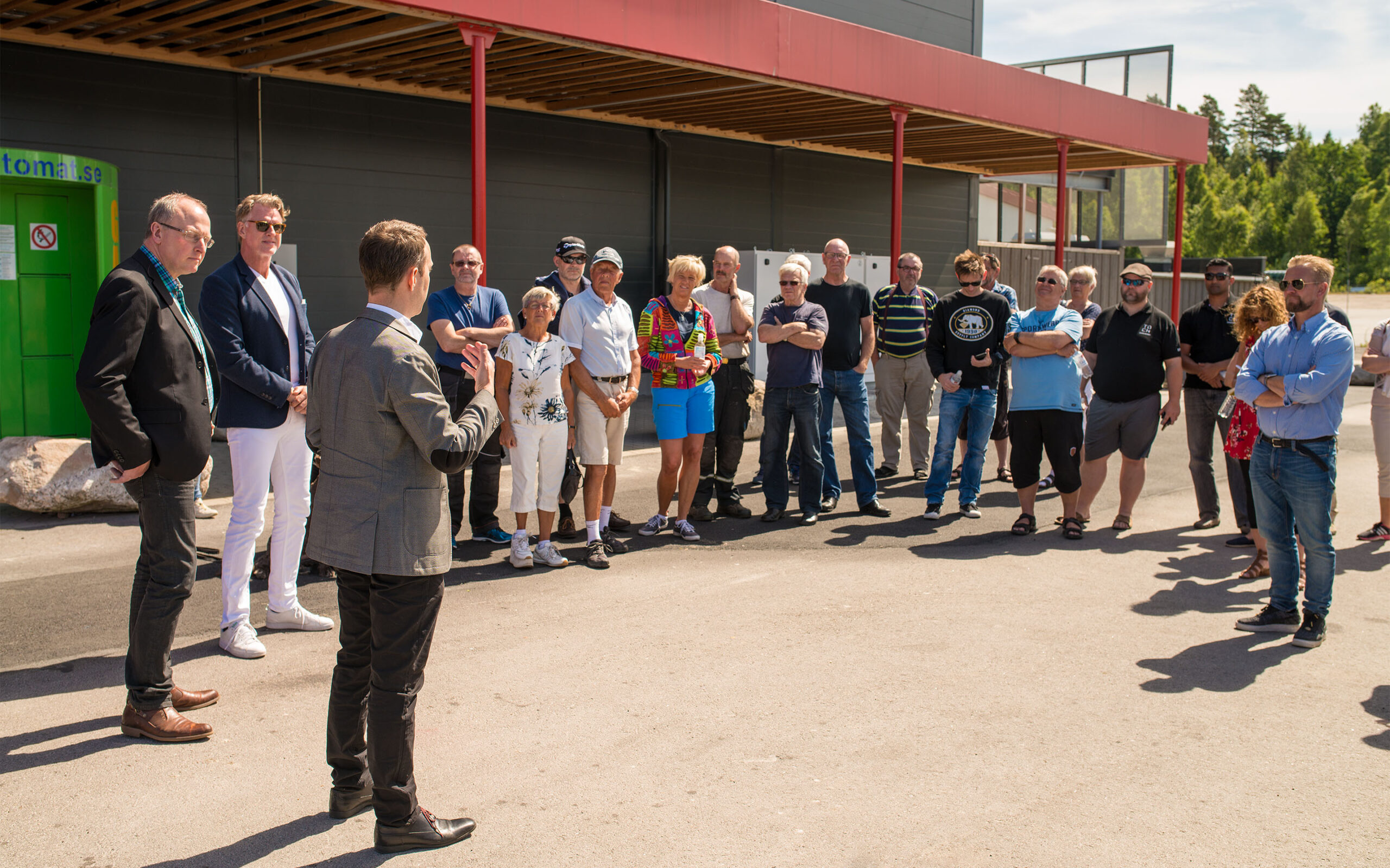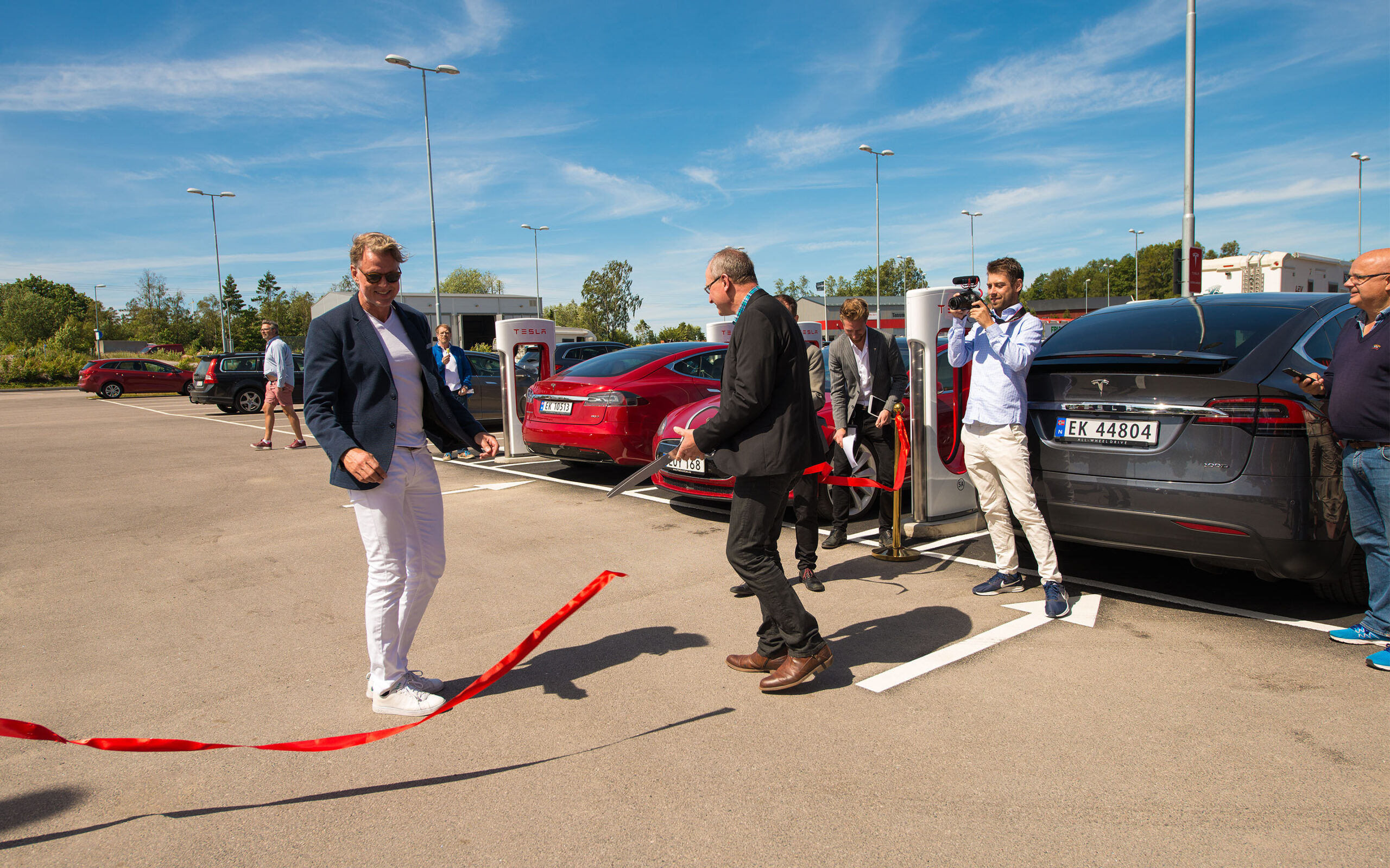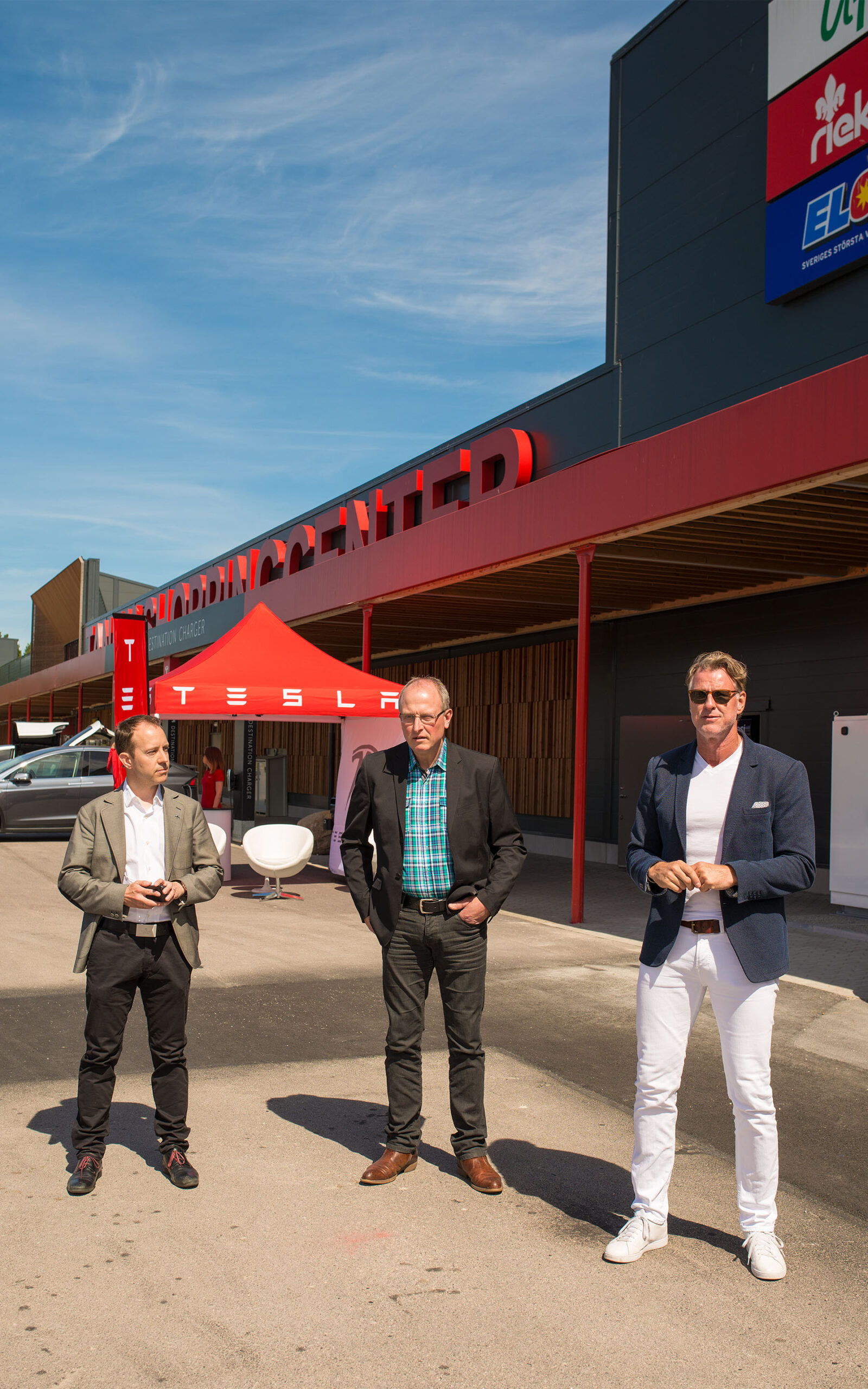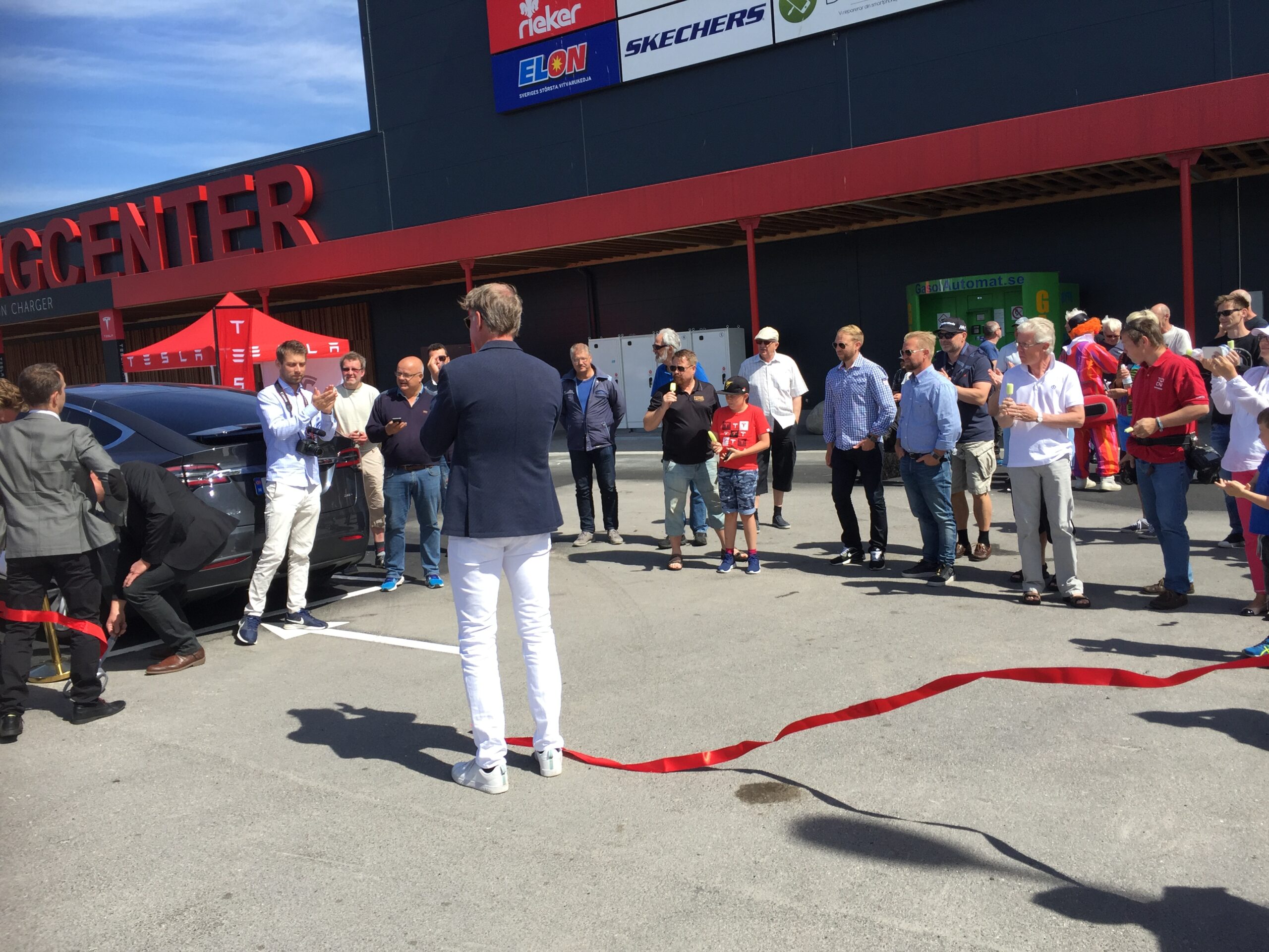 Tanum Shoppingcenter ligger like over grensen til Sverige og er et stort senter som fortsatt er i en rivende utvikling. Senteret har hittil kunnet tilby seks langsomtladende Tesla destinasjonsladere, men ved å utvide ladekapasiteten med hele 16 raske superladere, kan senteret nå ta imot enda flere biler. Tanum kommunes viseordfører, Roger Wallentin, fikk æren av å starte opp ladingen på en av teslaene som hadde stilt seg klare på hver sin lader. Og det var så klart en norsk bil som fikk den første tilgangen til strøm, like etter snorklippingen. Utover dagen ble det muligheter for prøvekjøring av teslaer, og her hadde folk booket seg inn på nettet flere uker i forveien.