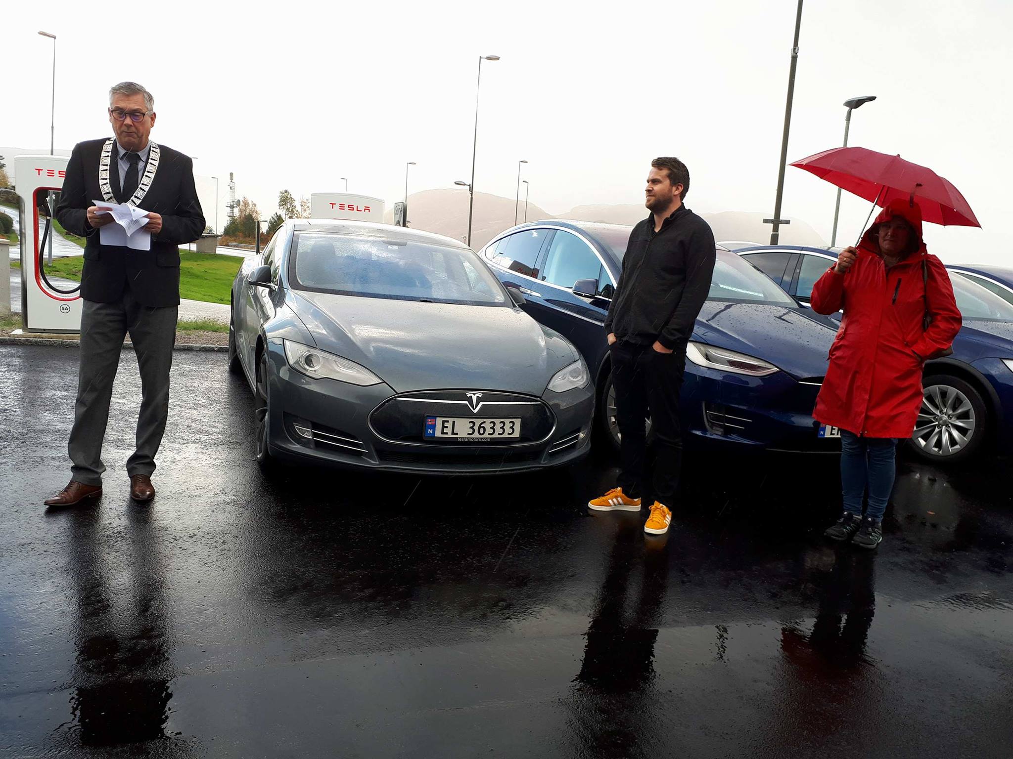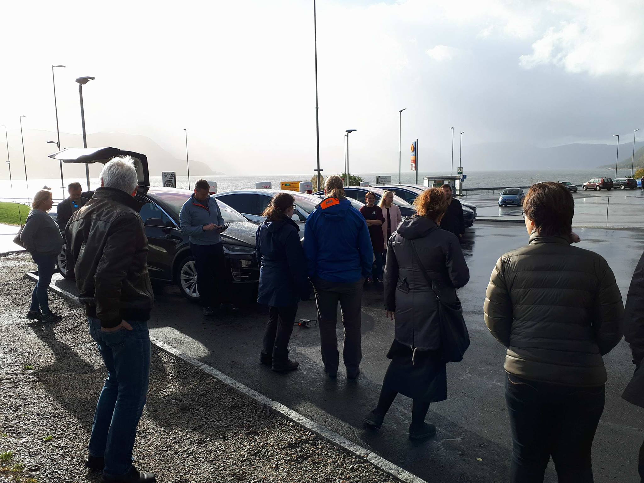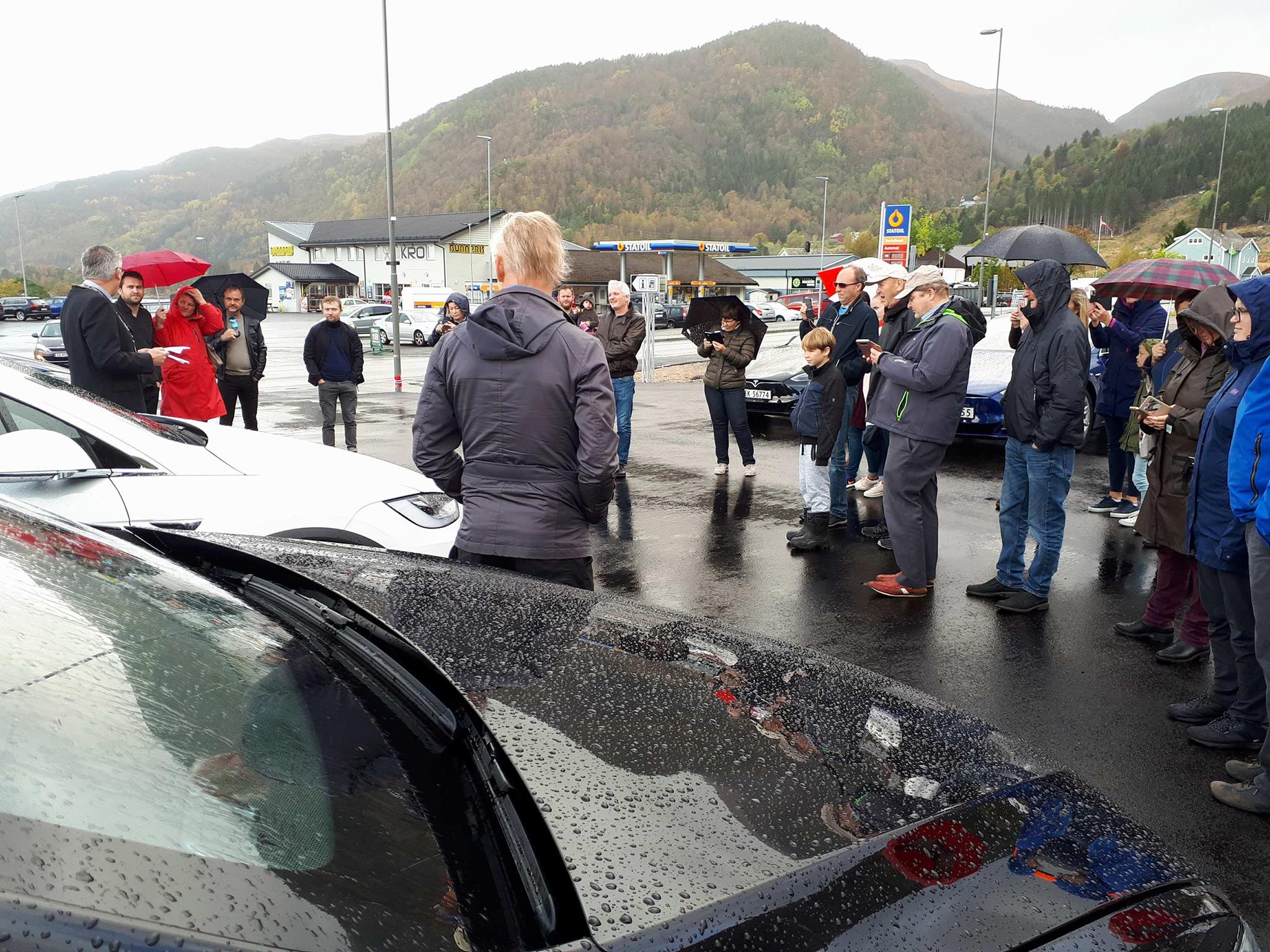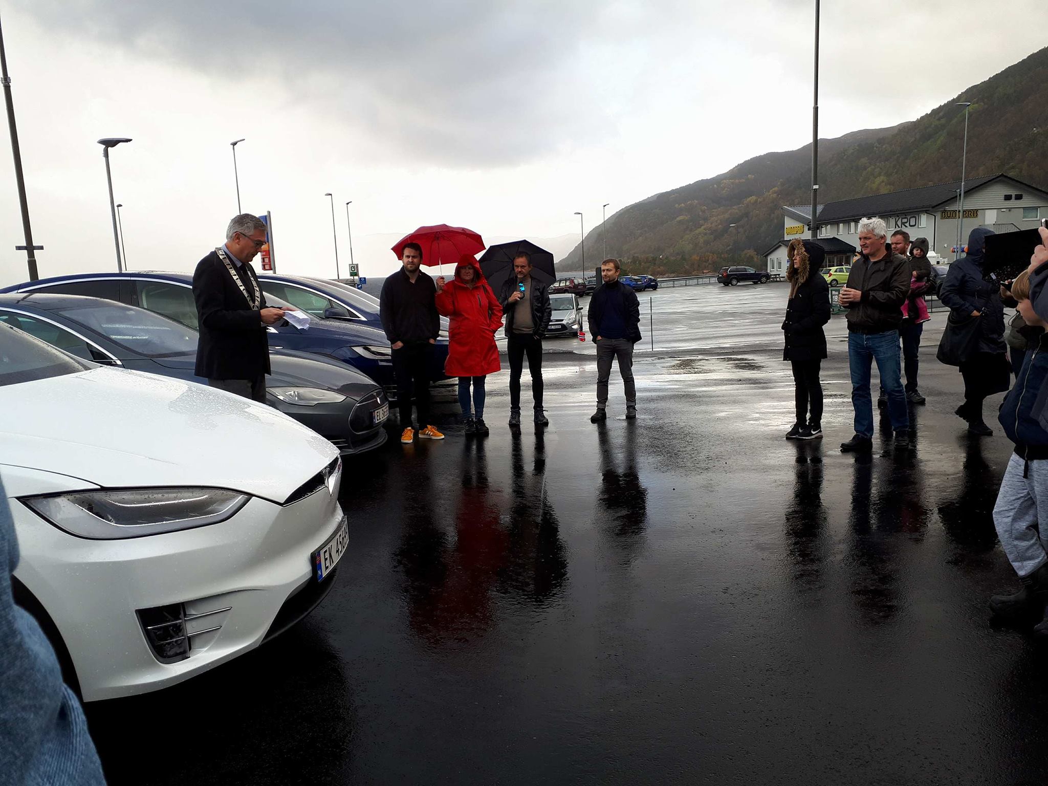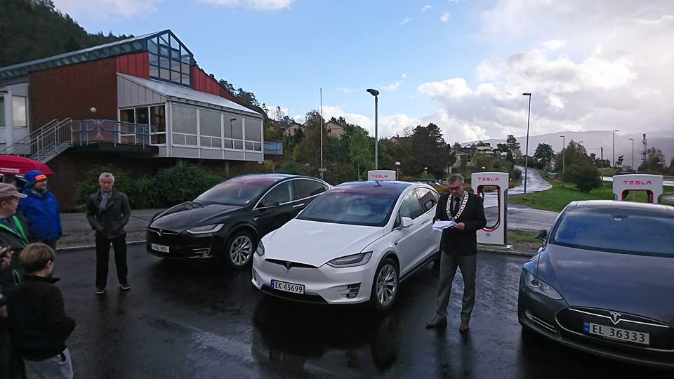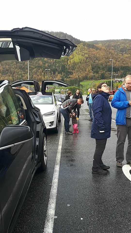 Der ble de møtt av flere med Tesla og av ordfører i Høyanger kommune, Petter Sortland. Det ble 11 biler ved åpningen tilsammen, – ca 25 mennesker til stede.