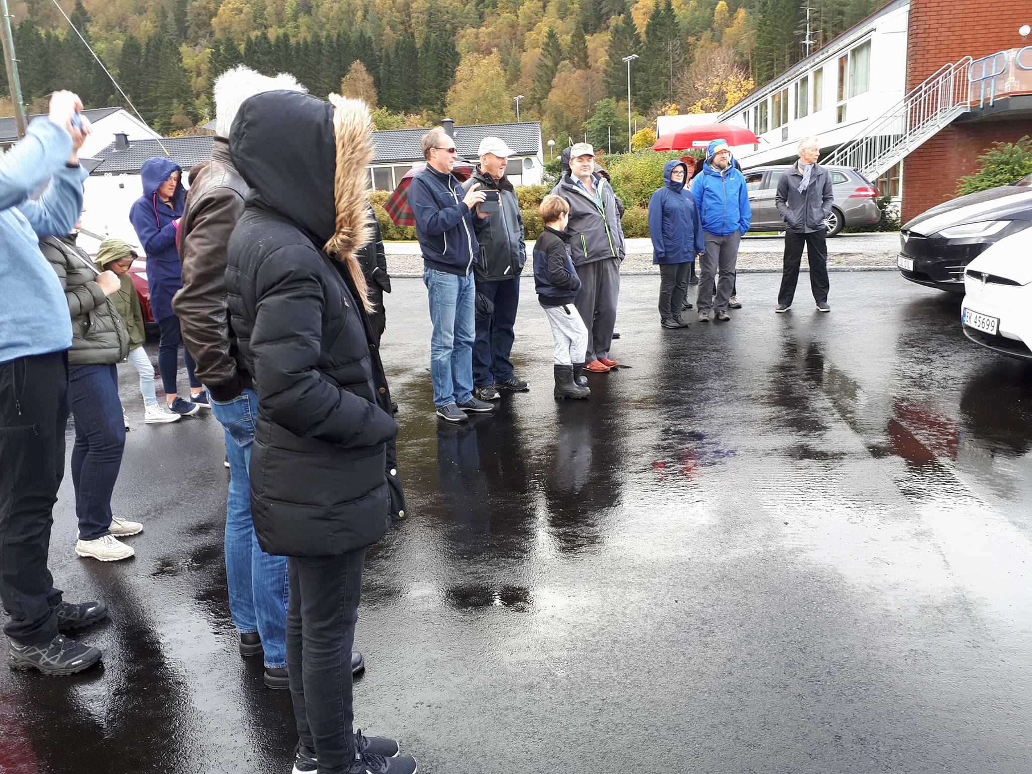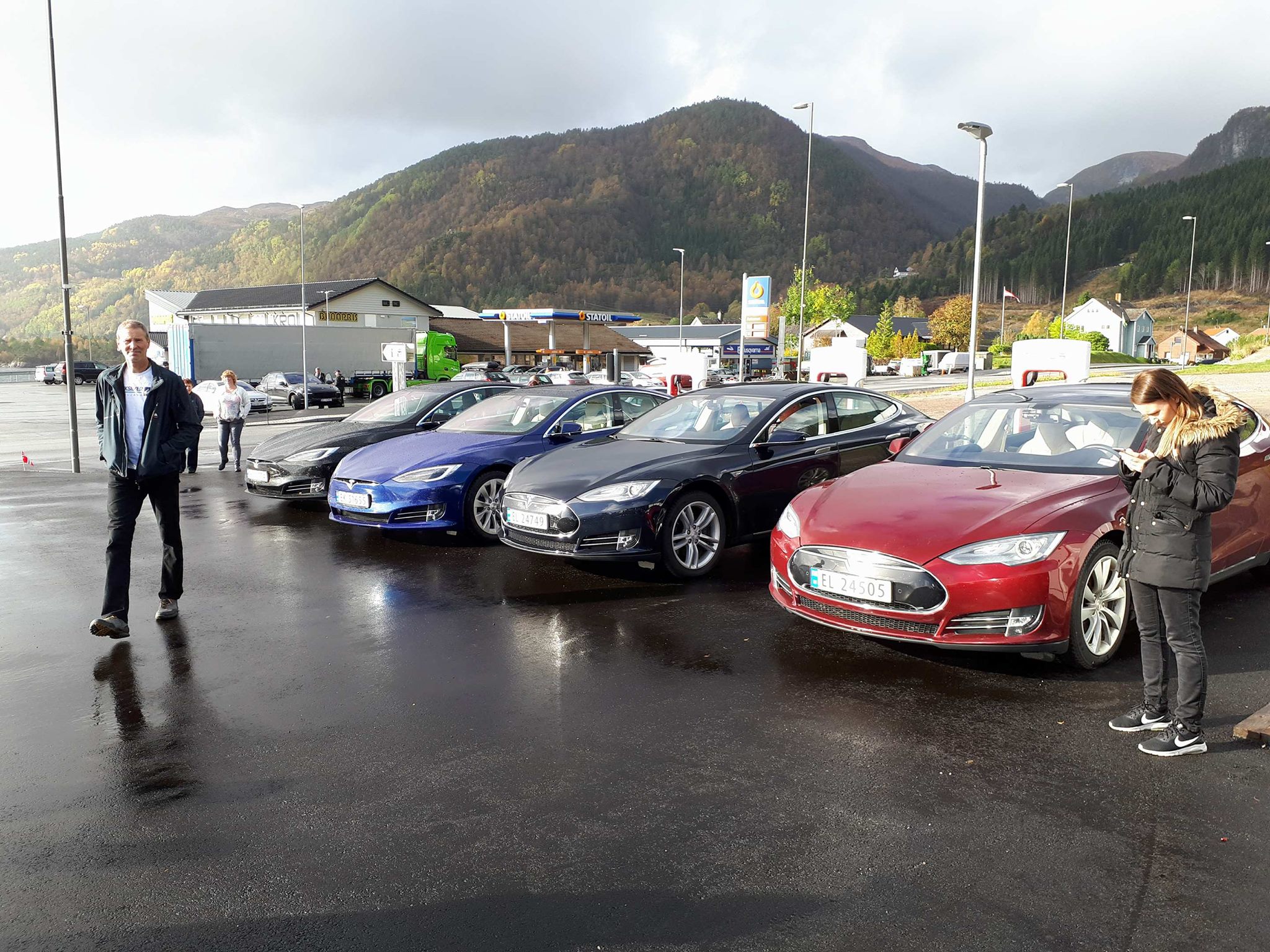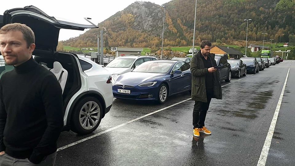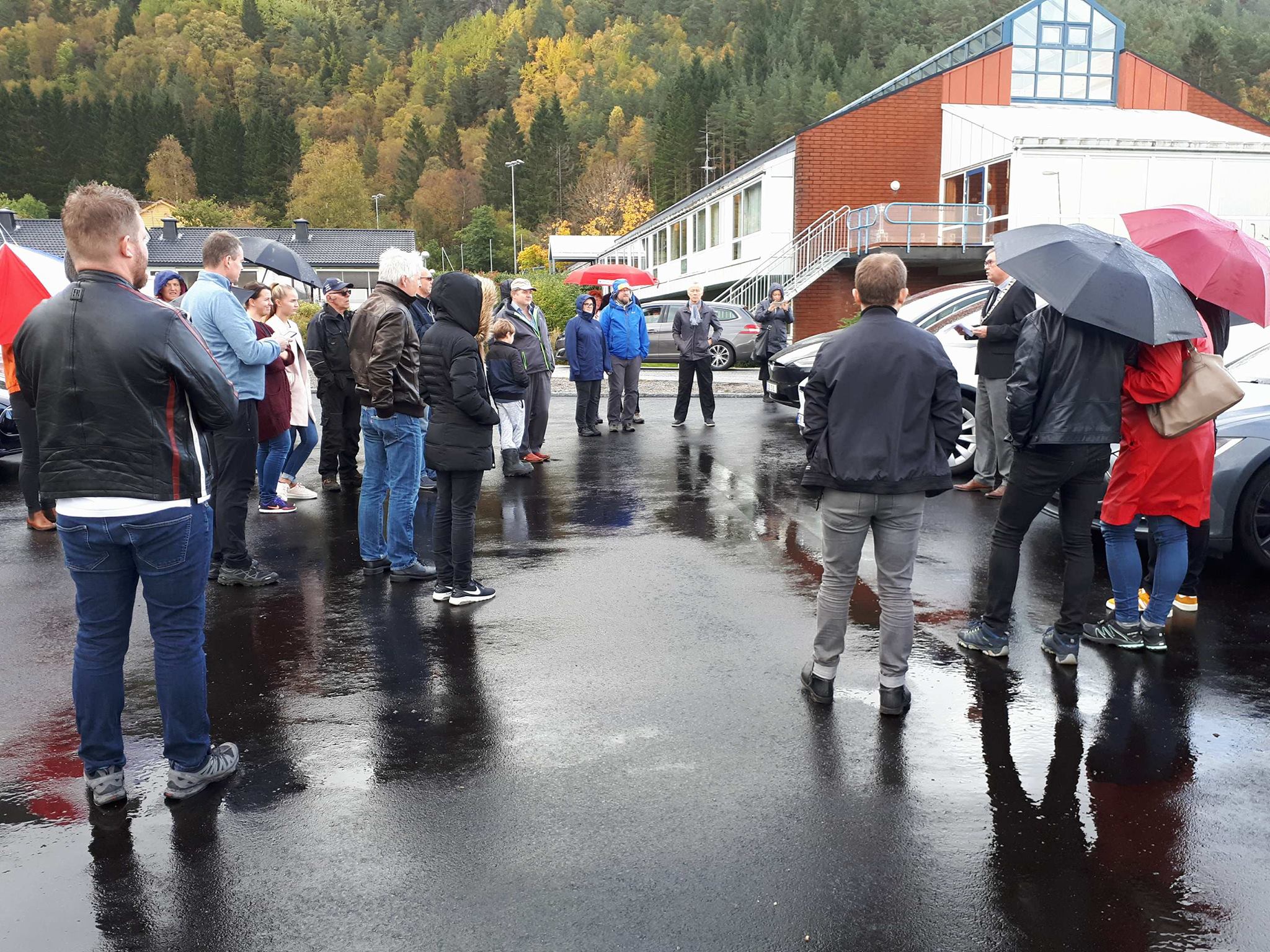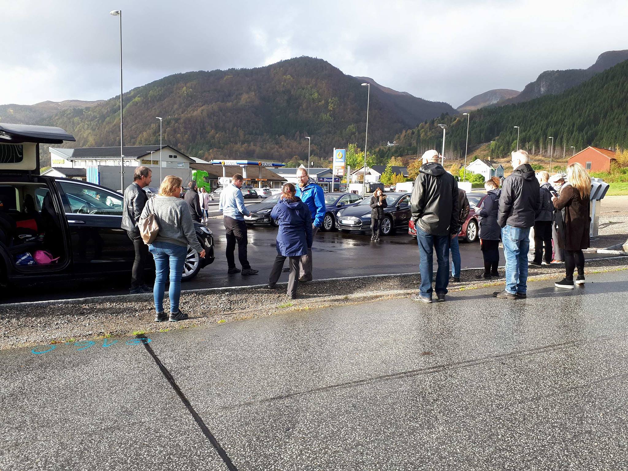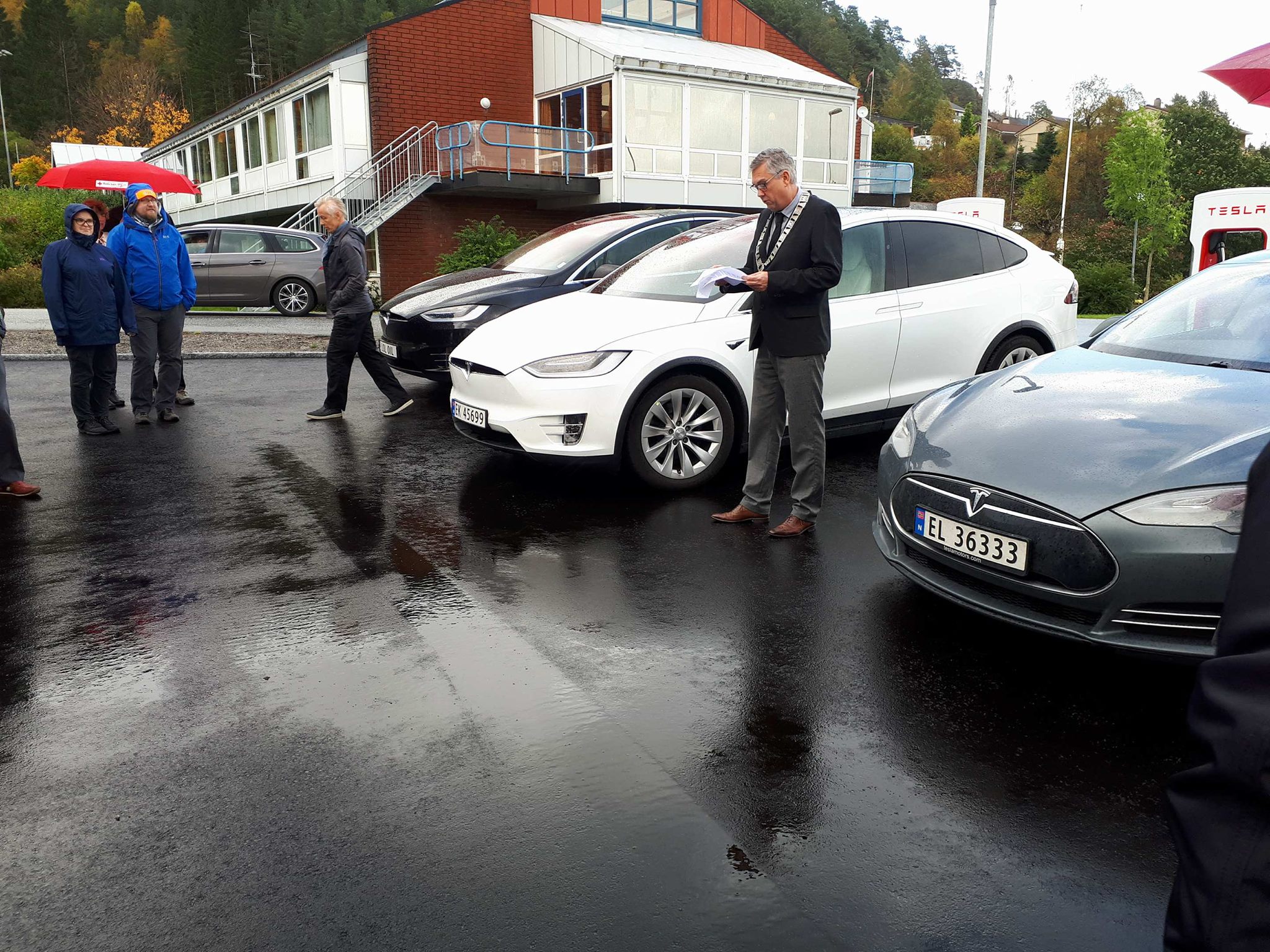 Der ble de møtt av flere med Tesla og av ordfører i Høyanger kommune, Petter Sortland. Det ble 11 biler ved åpningen tilsammen, – ca 25 mennesker til stede.