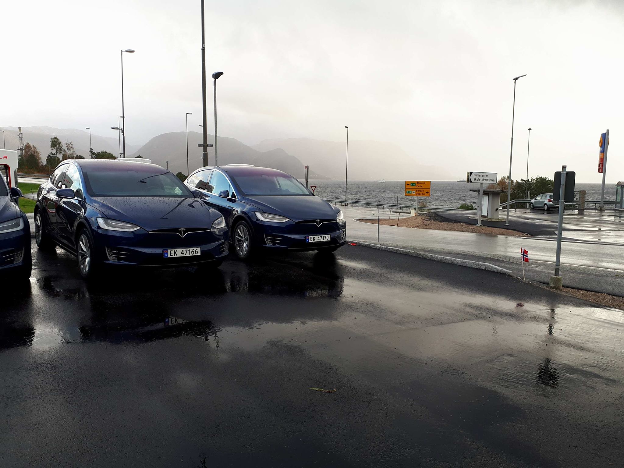 Lavik ligger langs europavei 39 mellom Bergen og Ålesund og er et perfekt sted å ha en superlader, nesten så nærme fergen man kan komme.
