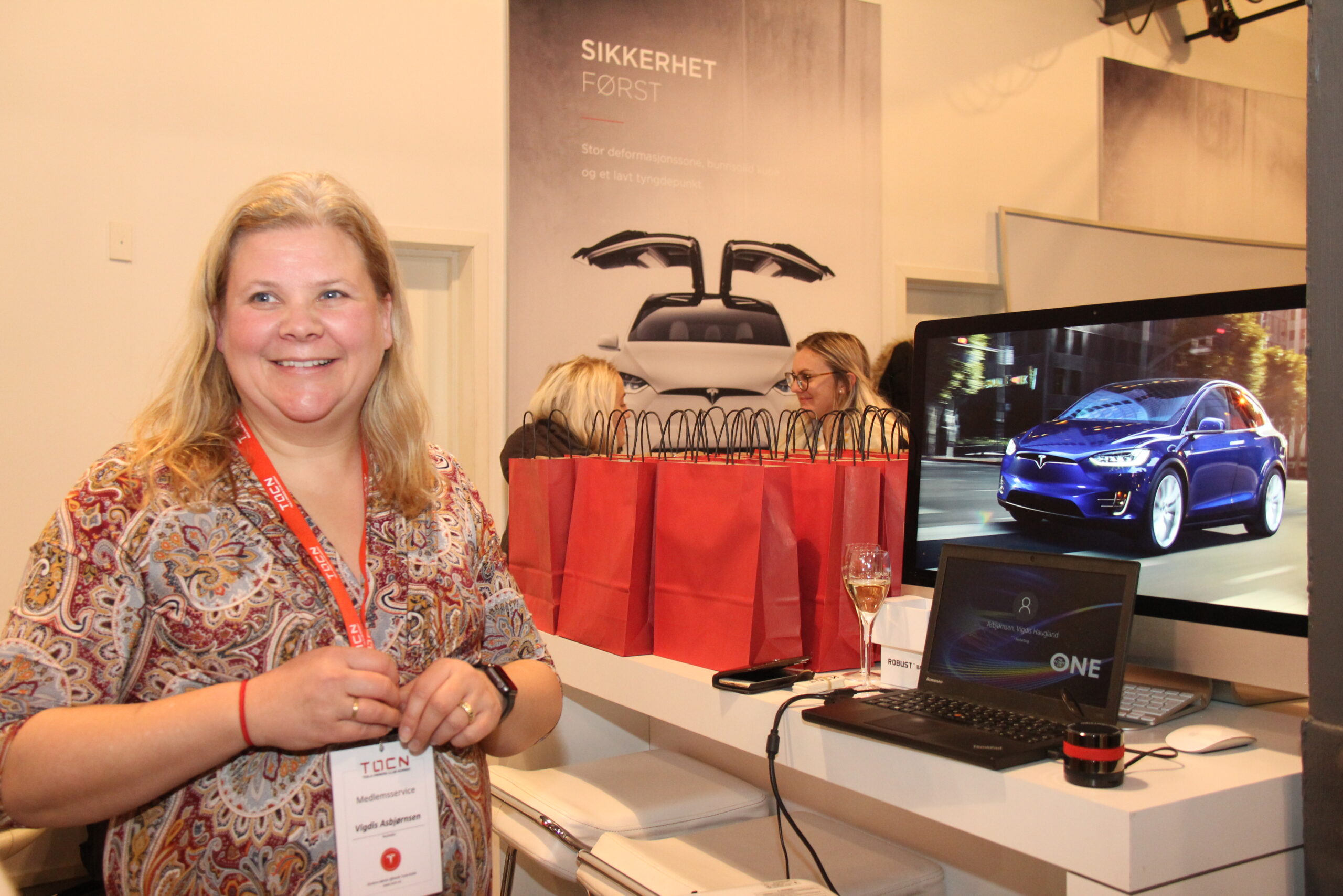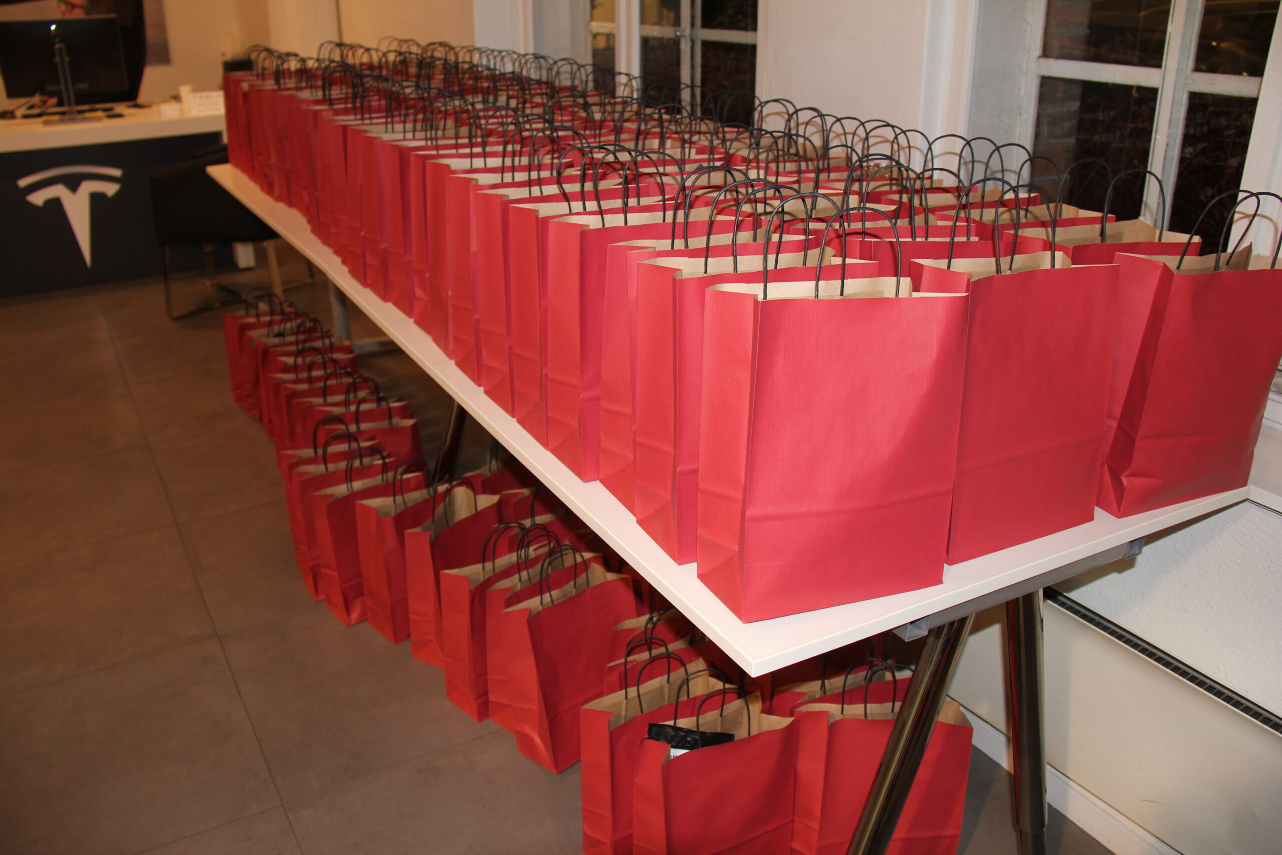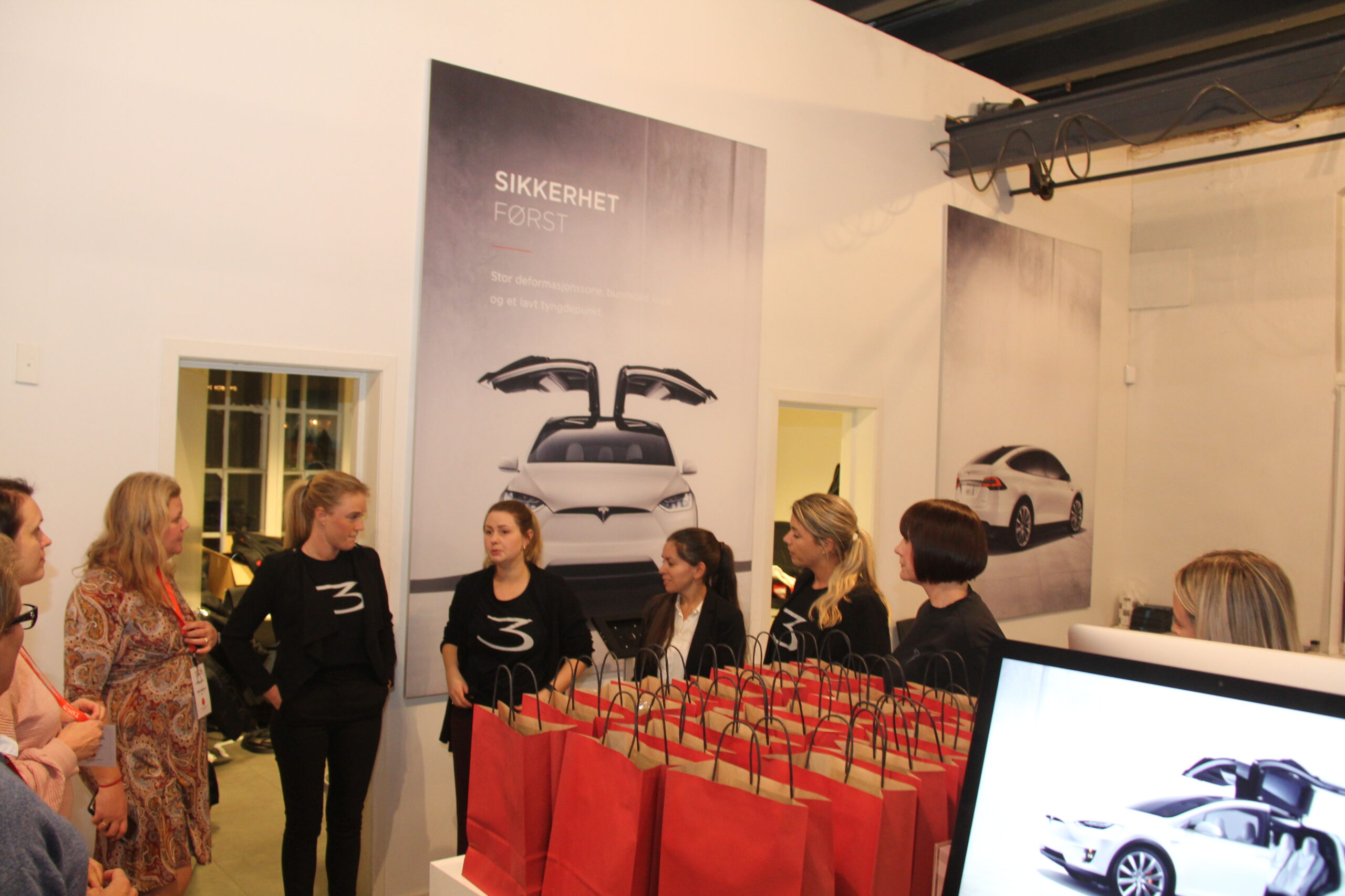 Goodiebagene var linet opp ved inngangsdøren, og alle som én forsvant de i løpet av de to-tre timene treffet varte. Vertinnene var Teslas egne ansatte damer, sammen med de fire damene fra styret i Tesla Owners Club Norway. Brusende drikke, med og uten alkohol, boblet i glassene, og på et langbord var det dekket opp med deilig fingermat av mange slag. Damene hygget seg enormt, og praten gikk høylytt. Og det var Model 3 og Tesla det dreide seg om i absolutt alle samtalene. Her var det både erfarne Tesla-sjåfører, helt ferske sjåfører og noen som ennå ikke hadde Tesla, men som kanskje så en mulighet som fremtidig eier av en Model 3.