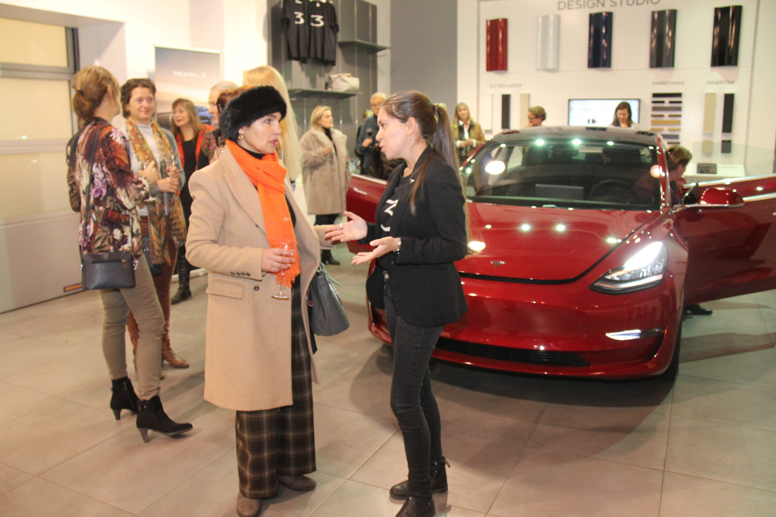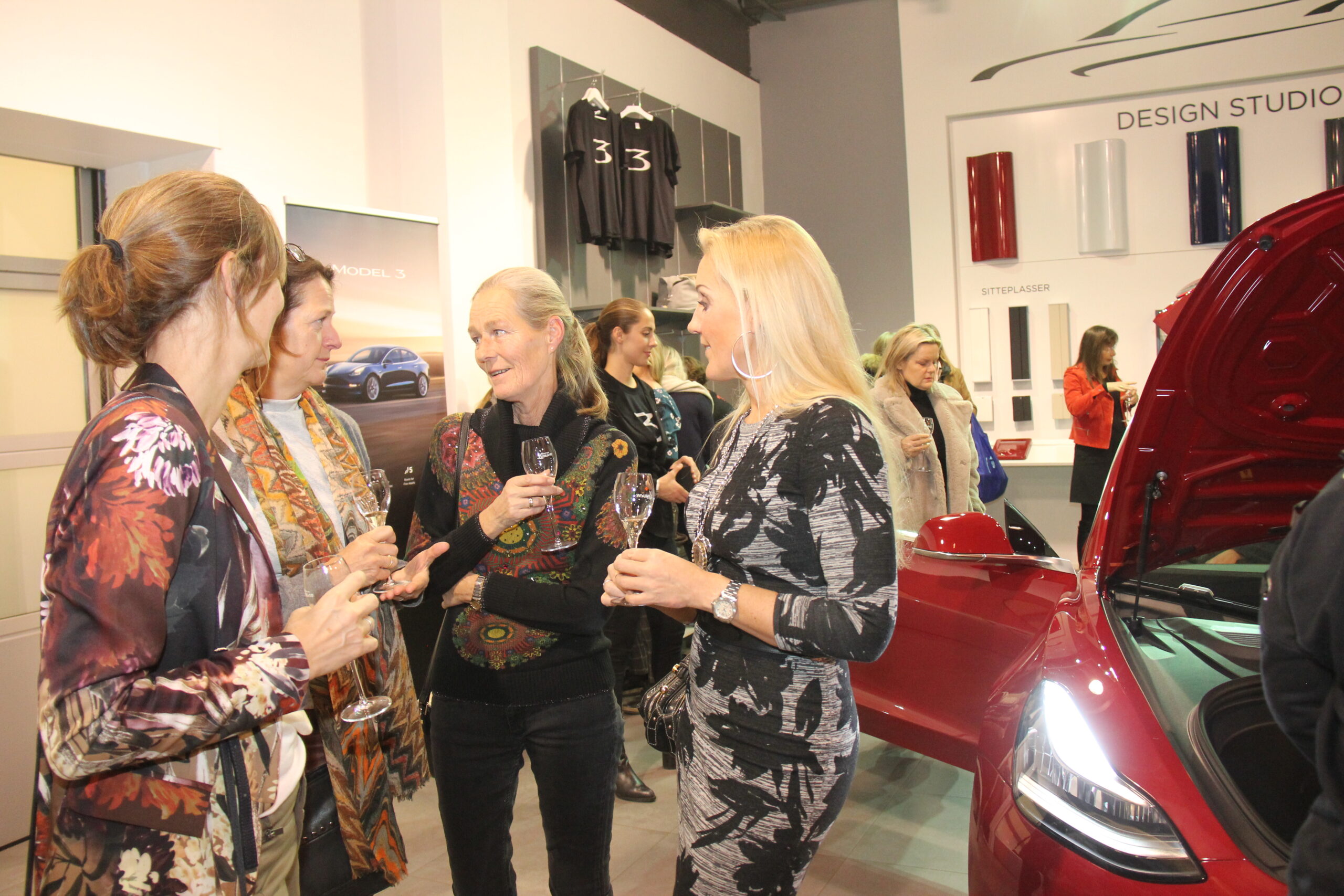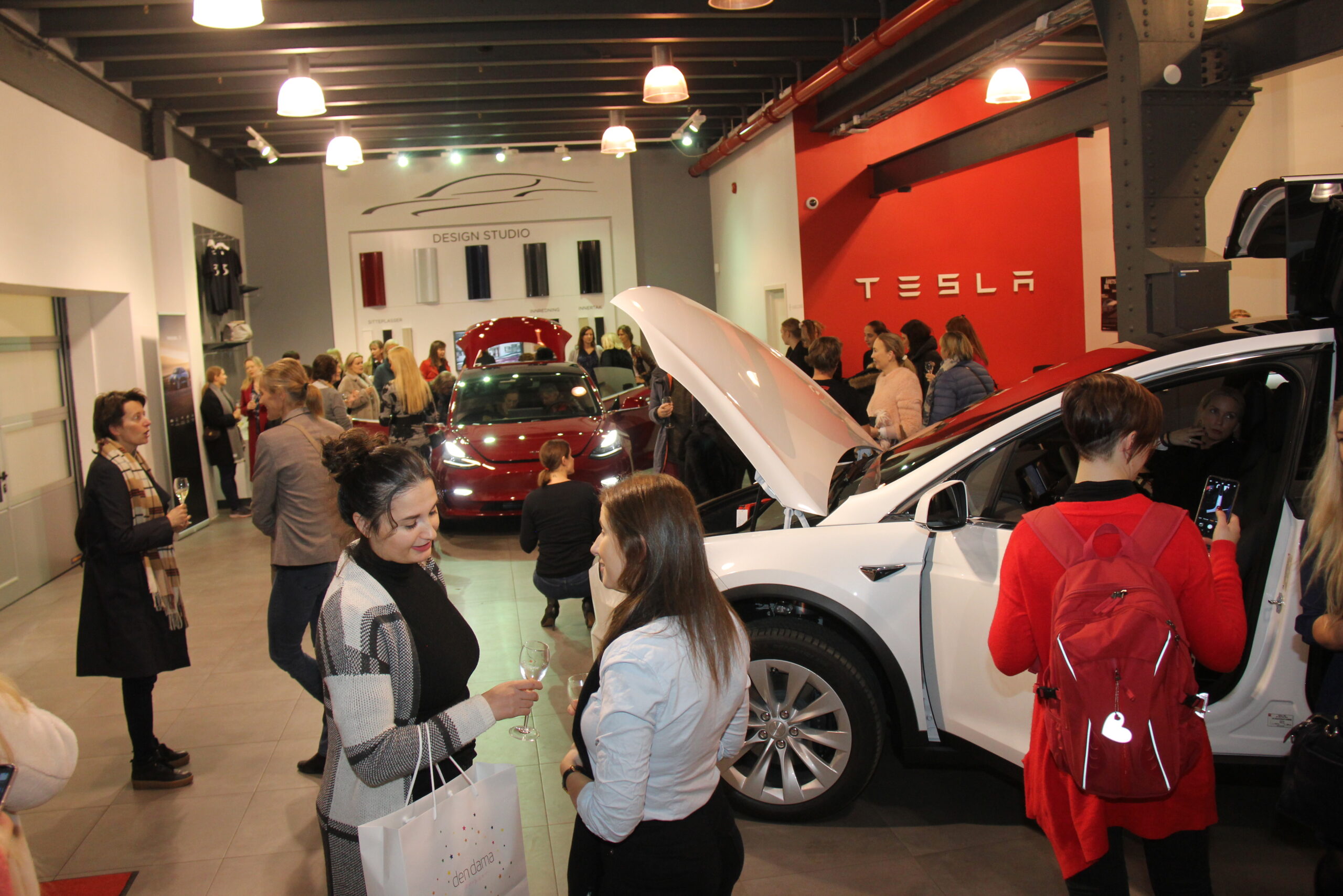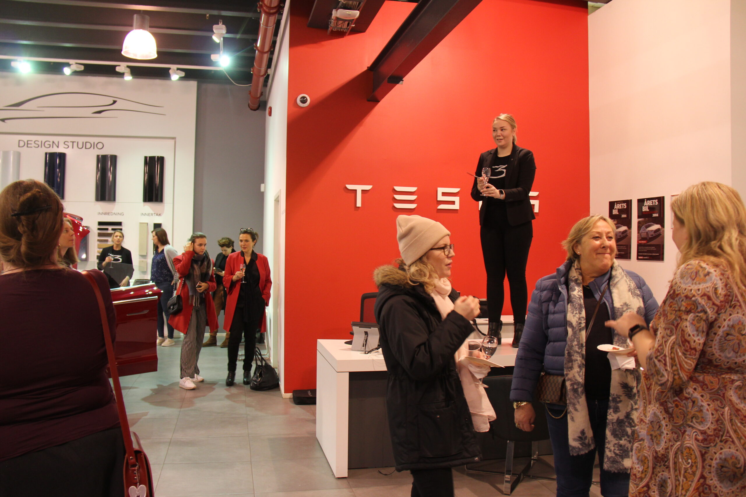 At damer kunne snakke bare om bil en hel kveld, var det kanskje noen som undret seg over. Men etter denne første kvelden bør all tvil være borte. Damer og bil hører like godt sammen som menn og bil. Og alle de mannlige Tesla-ansatte var også langt unna showrommet denne kvelden.