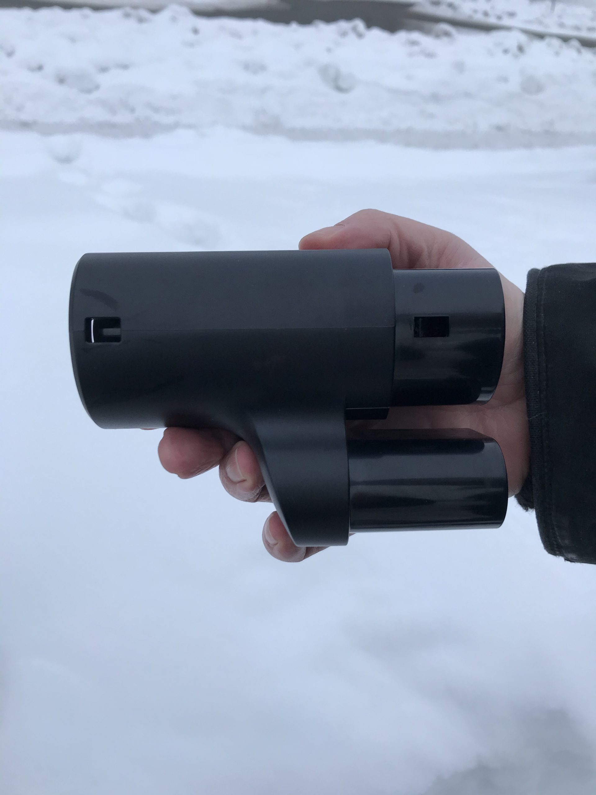 - Ladepistolen har et nytt design, for at den skal være enklere å håndtere. Den skal (som sin forgjenger) vippes litt opp, for å løses ut av holderen på ladestolpen.