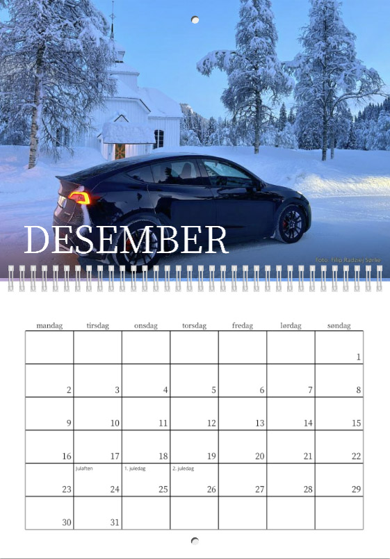 Nok en gang lager TOCN en helt egen årskalender, kun for oss Tesla-frelste! Kalenderen for 2024 består av 13 av de beste bildene fra høstens fotokonkurranse, der temaet var “Vår, sommer, høst og vinter med Tesla”.