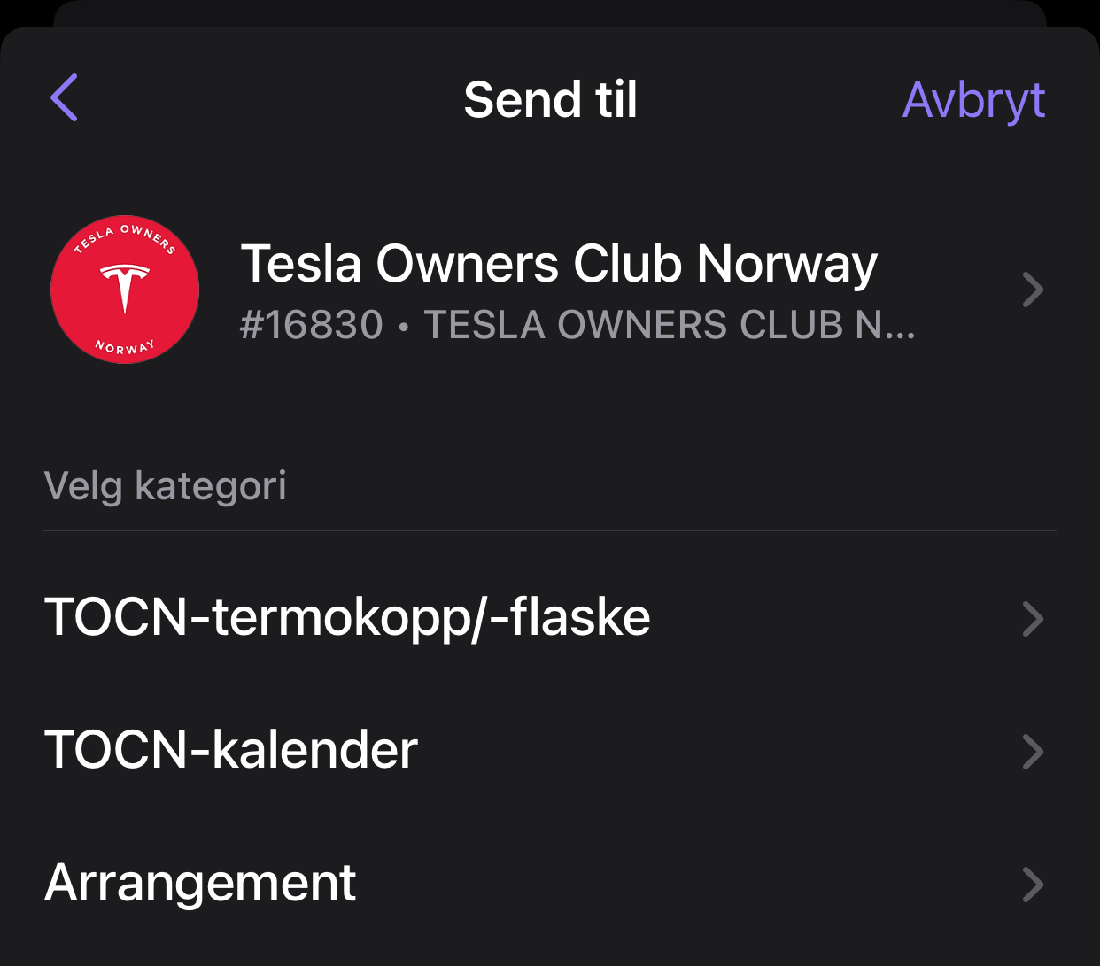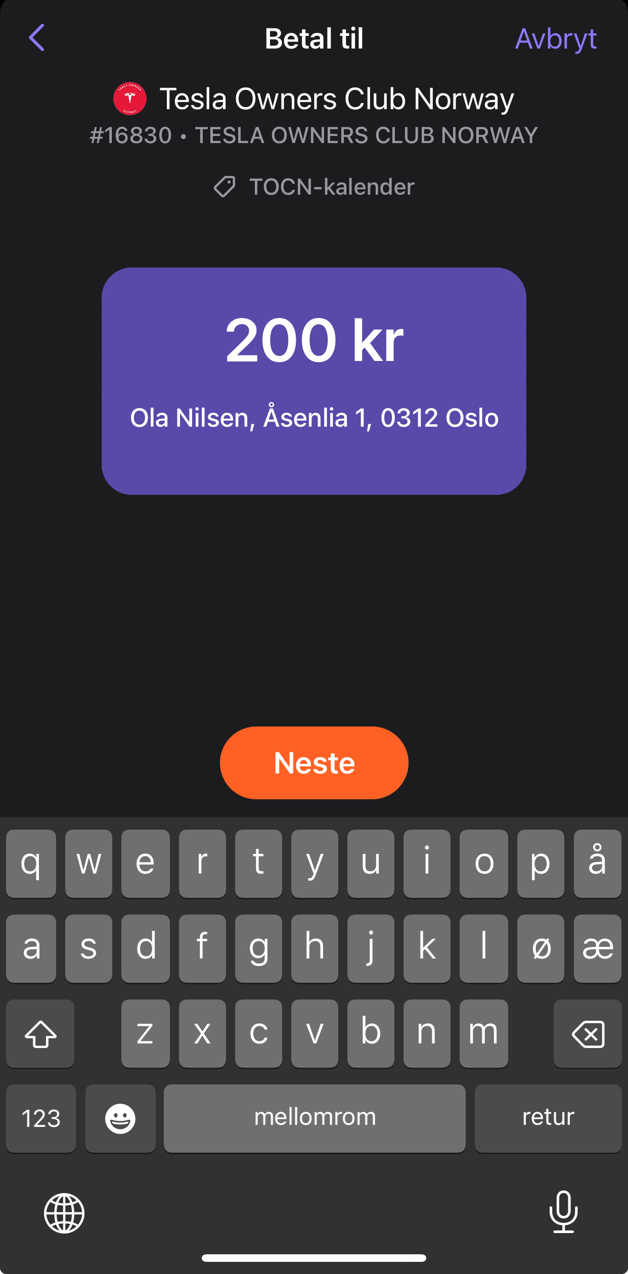 Så, skynd deg å åpne Vipps på telefonen, velg ikonet “Send”, legg inn 16830 – Tesla Owners Club Norway, velg “TOCN-kalender“, og legg inn antall og beløp. Husk også adressen kalenderen/kalenderne skal sendes til.