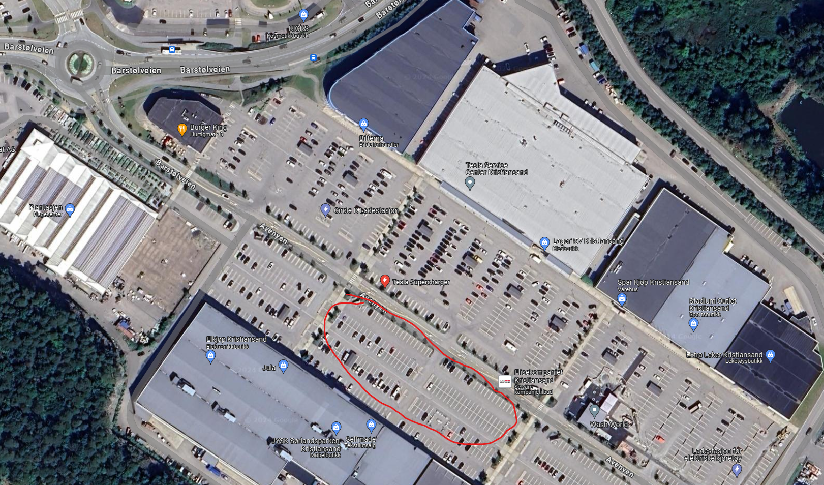 - I Kristiansand, i nærheten av superchargerene, se kart under – lørdag 27. april, klokken 21:00.