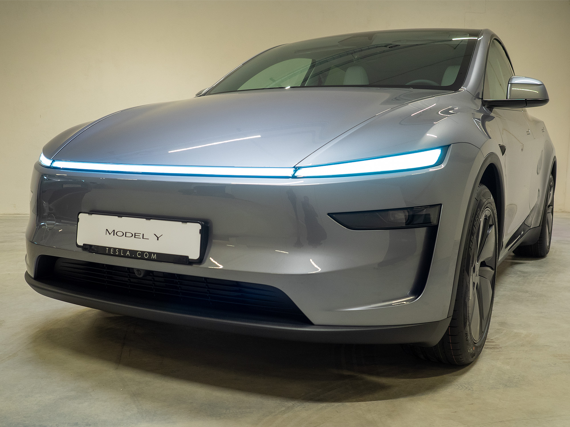 På den nye Model Y er fronten enda lavere, og er fremhevet av en ny lyslist som har likhet med den vi finner på både Cybertruck og den nylig introduserte Cybercab. Den tredelte lyslisten er konstruert for å være aerodynamisk effektiv.