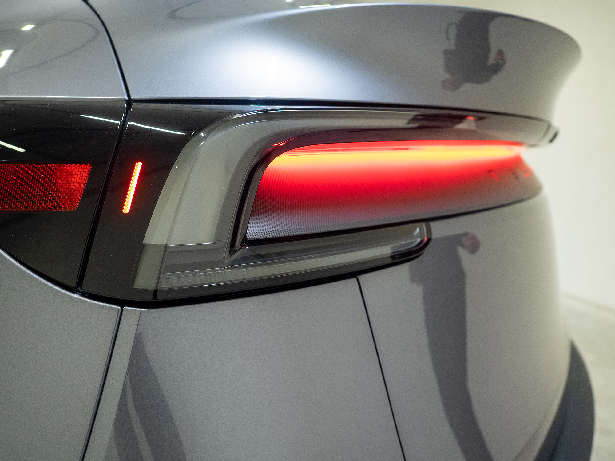 Bakenden av nye Model Y er definert av en helt ny lyslist og bakluke. Lyslisten er et av verdens første baklys med et indirekte, eksternt reflektert lyssystem som projiserer lyset på en tilpasset applikasjon. Lyslisten bak, på hele 1,6 meter, er en av de lengste lyslistene i bransjen.