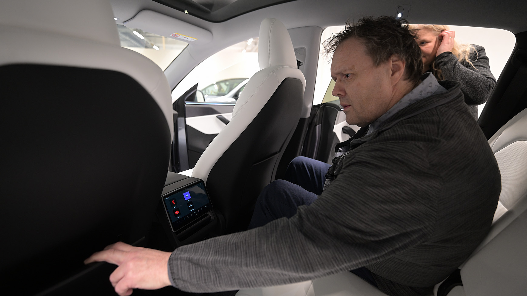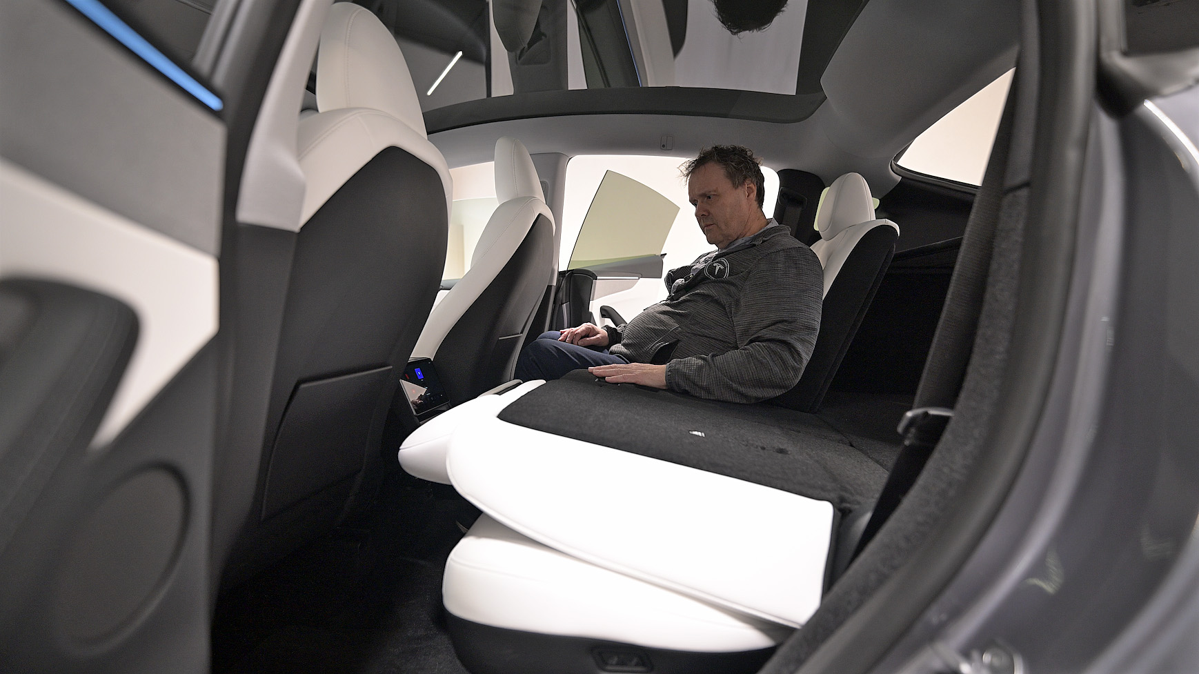 Passasjerer i baksetet vil kunne glede seg over en helt ny reiseopplevelse, der det har kommet inn en 8’’ berøringsskjerm bak. Denne har integrert klimakontroll samt underholdningsalternativer, inkludert spill, lyd og videostrømming. Skjermen støtter også tilkobling til to separate Bluetooth-enheter, slik at passasjerer kan velge mellom ulike mediaalternativer. Den inkluderer også et kraftig ladesystem med 65W doble USB-C-uttak, som kan lade to bærbare datamaskiner samtidig.