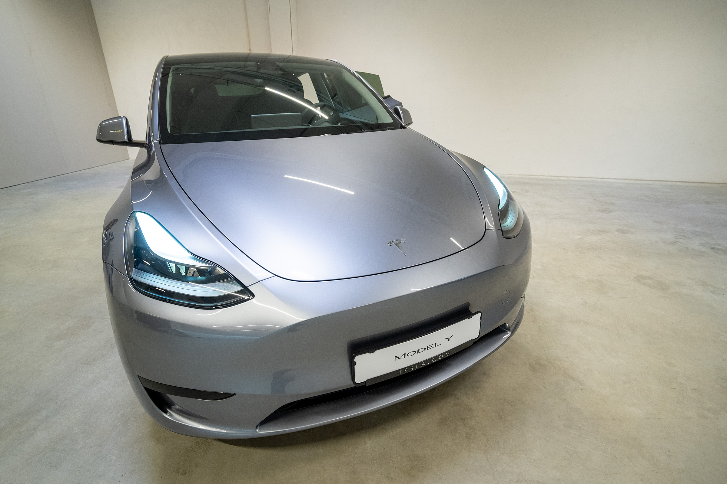 I fargen Quicksilver, som var den fargen demobilen hadde, er den ganske stilig. Linjene er lekre, og der forrige Model Y har en skarp kant i fronten, er denne nye mer avrundet og elegant. Frontlysene ser litt uvante ut, men de smelter fint inn i linjene. Jeg kjenner igjen detaljer i fronten som kommer fra Cybertruck og Cybercab, men også fra de øvrige modellene.