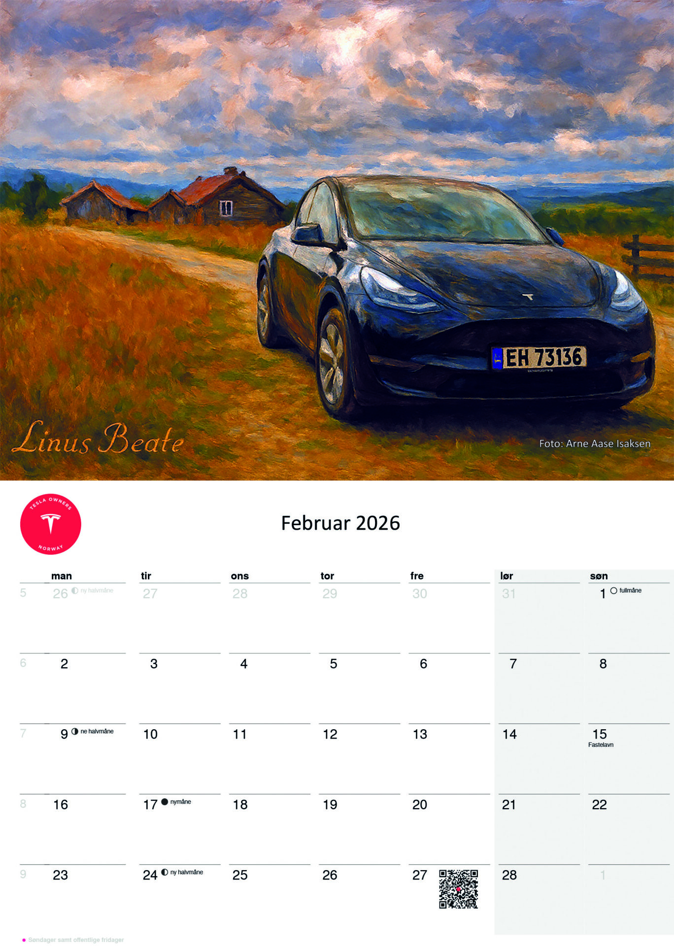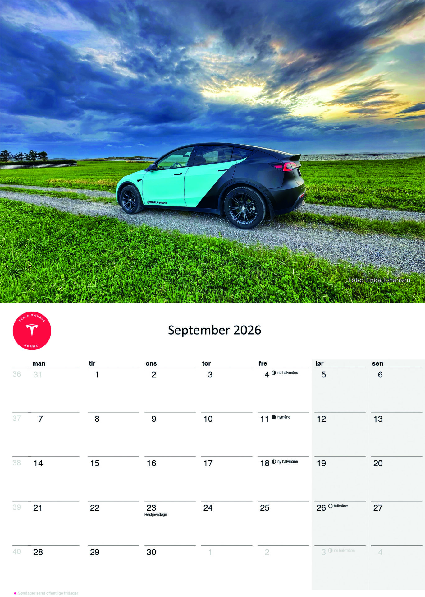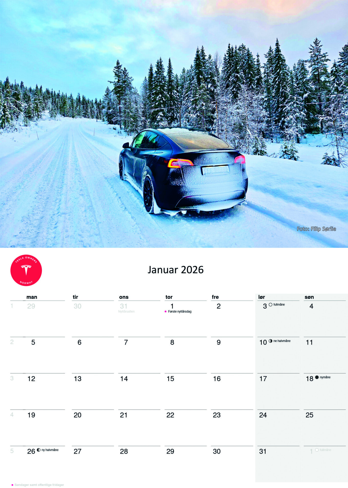 Det nærmer seg jul, og tid for å bestille TOCNs nye årskalender! Kalenderen for 2026 består av 13 av de beste bildene fra høstens fotokonkurranse, der temaet var “Året rundt med Tesla”.