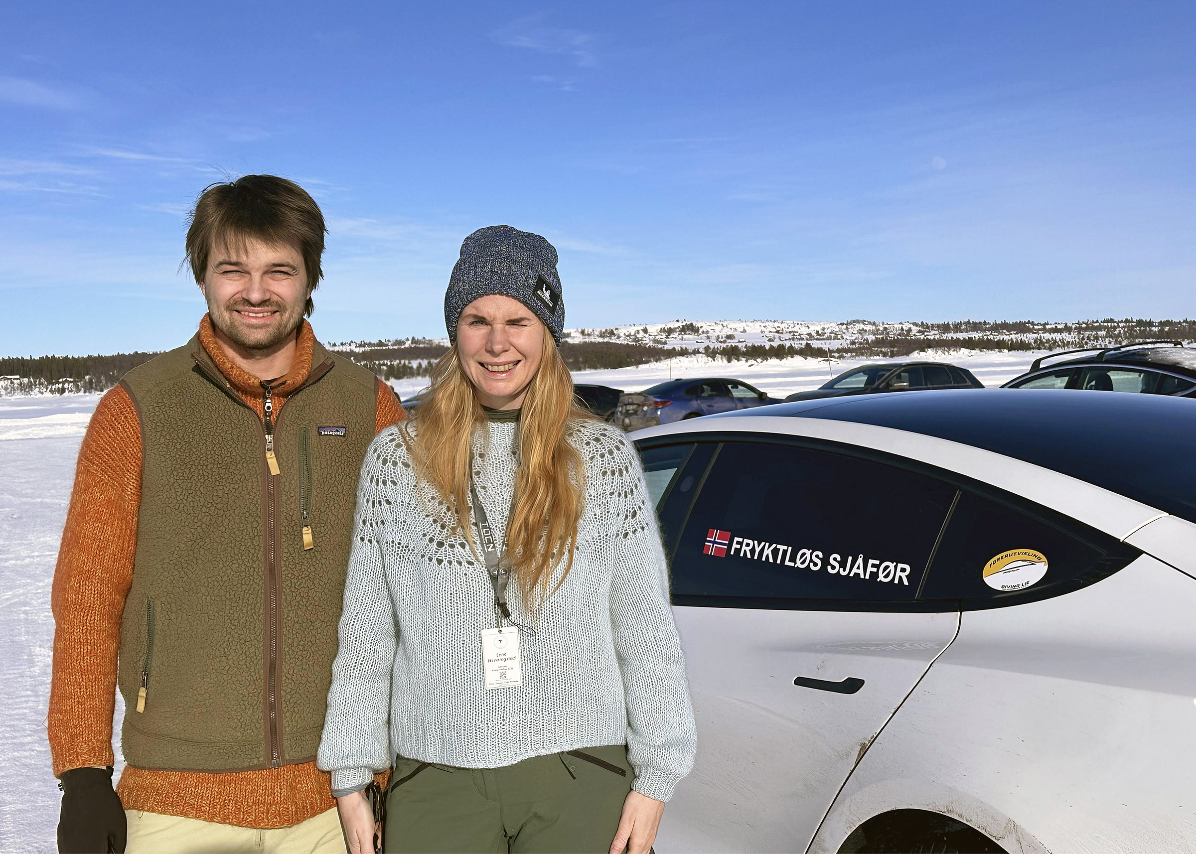 Nils og Lene Henningstad fra Fetsund hadde kortere vei til Golsfjellet i sin Model 3 Performance. Det var andre gang de deltok på vintertreffet, og de skiftet på å sitte bak rattet.