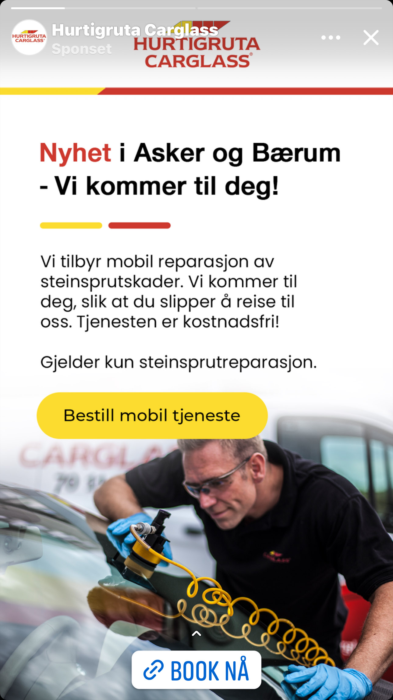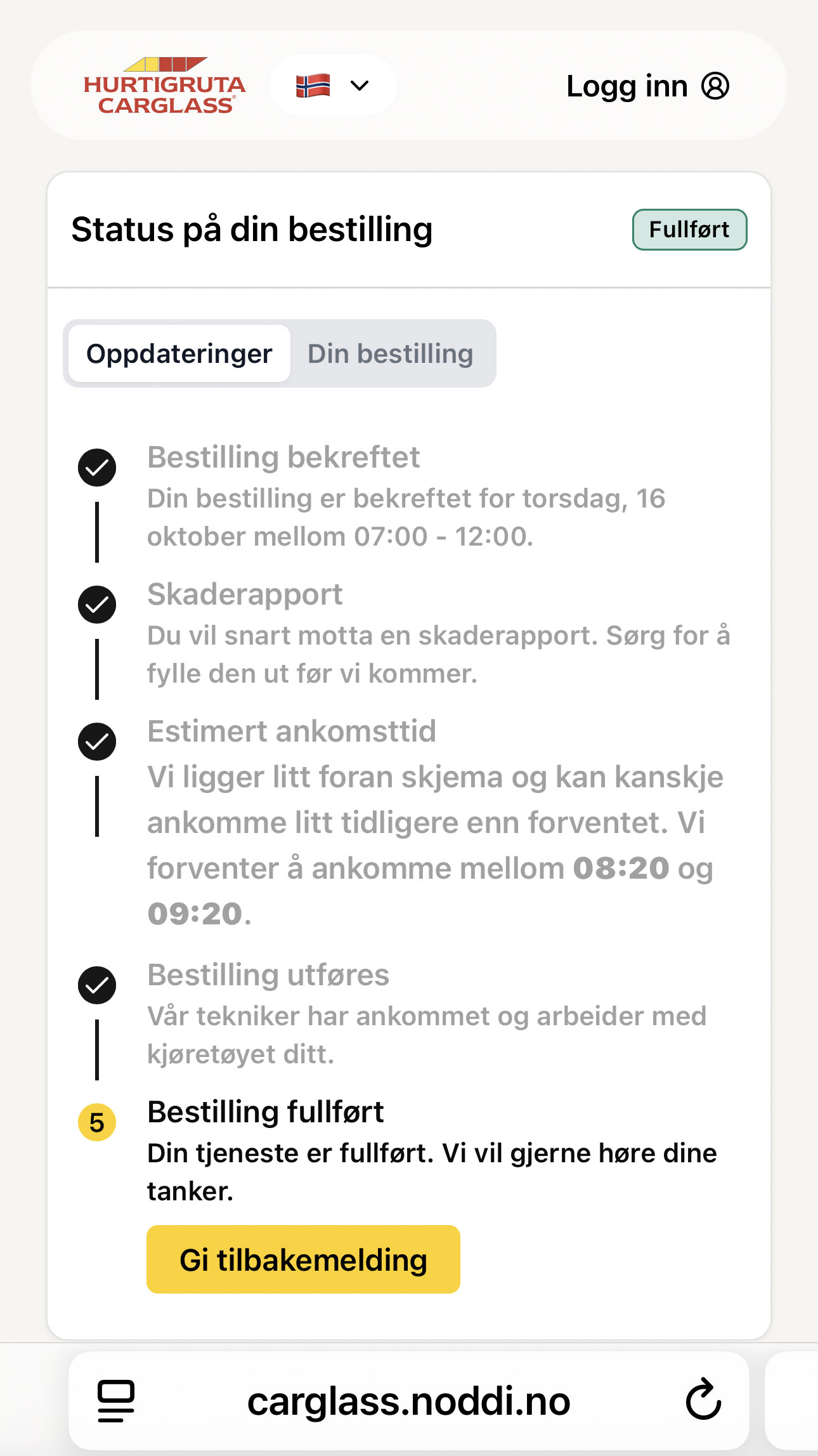 Nå kan Hurtigruta Carglass, i samarbeid med Noddi, komme hjem til deg – og reparere frontruta der. Prosessen er både intuitiv, rask og sikker. Du blir informert gjennom hele prosessen.